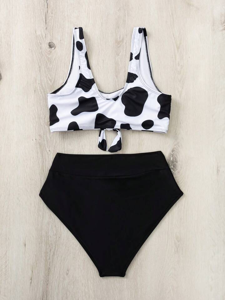 Cow Print Knot Hem Bikini Set For Summer Beach