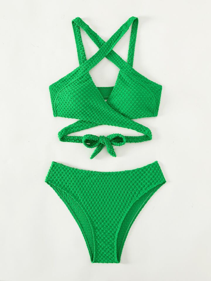 Criss Cross Tie Back Summer Beach Bikini Set