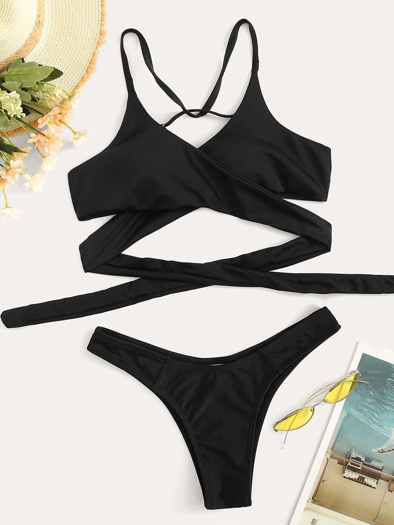 Crisscross Wrap Halter Top With Hipster Bikini Bottom