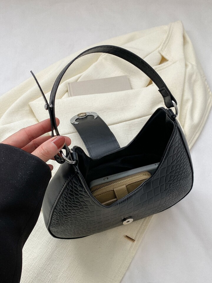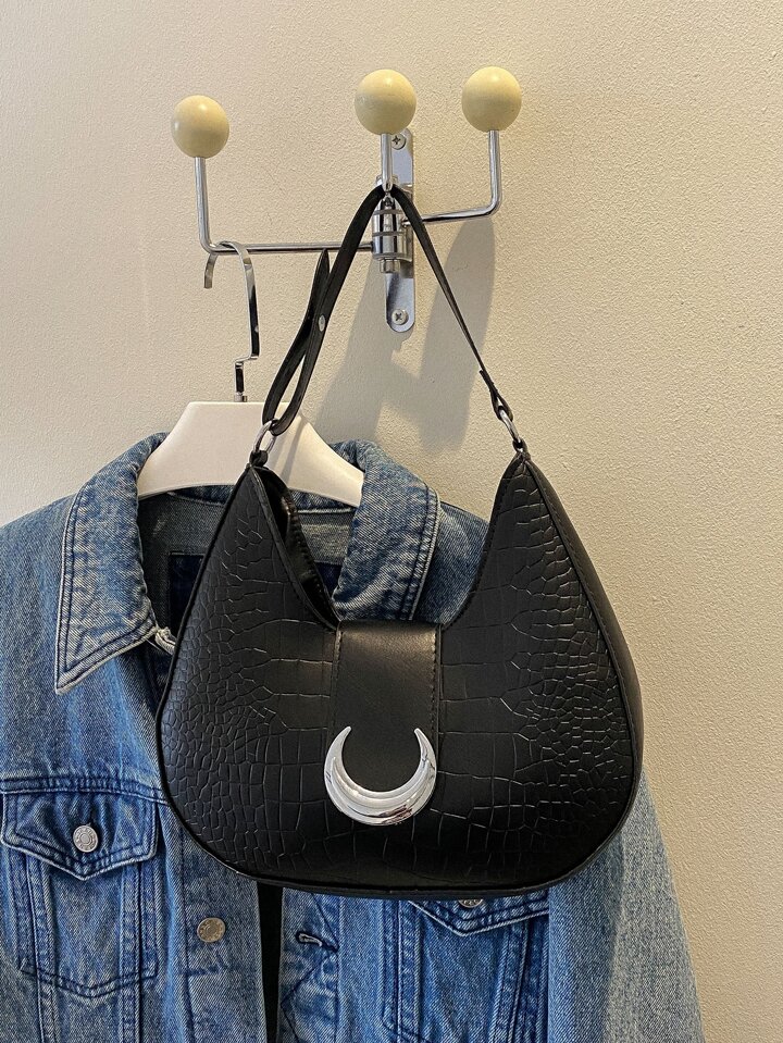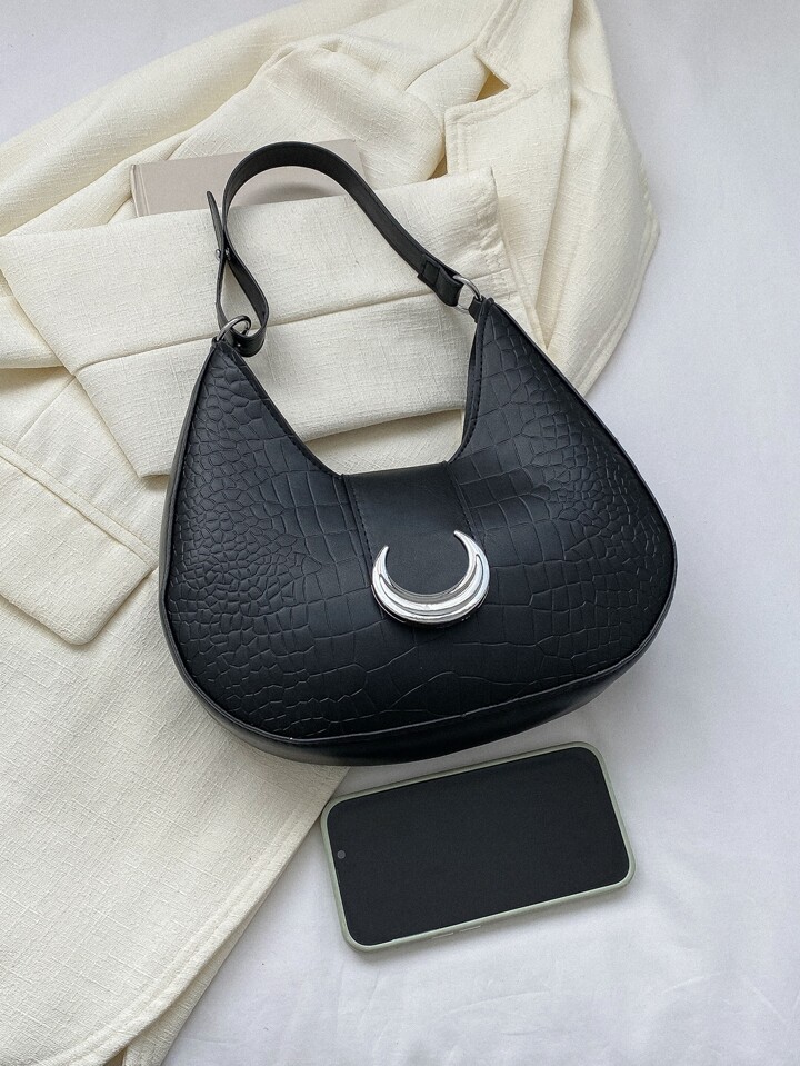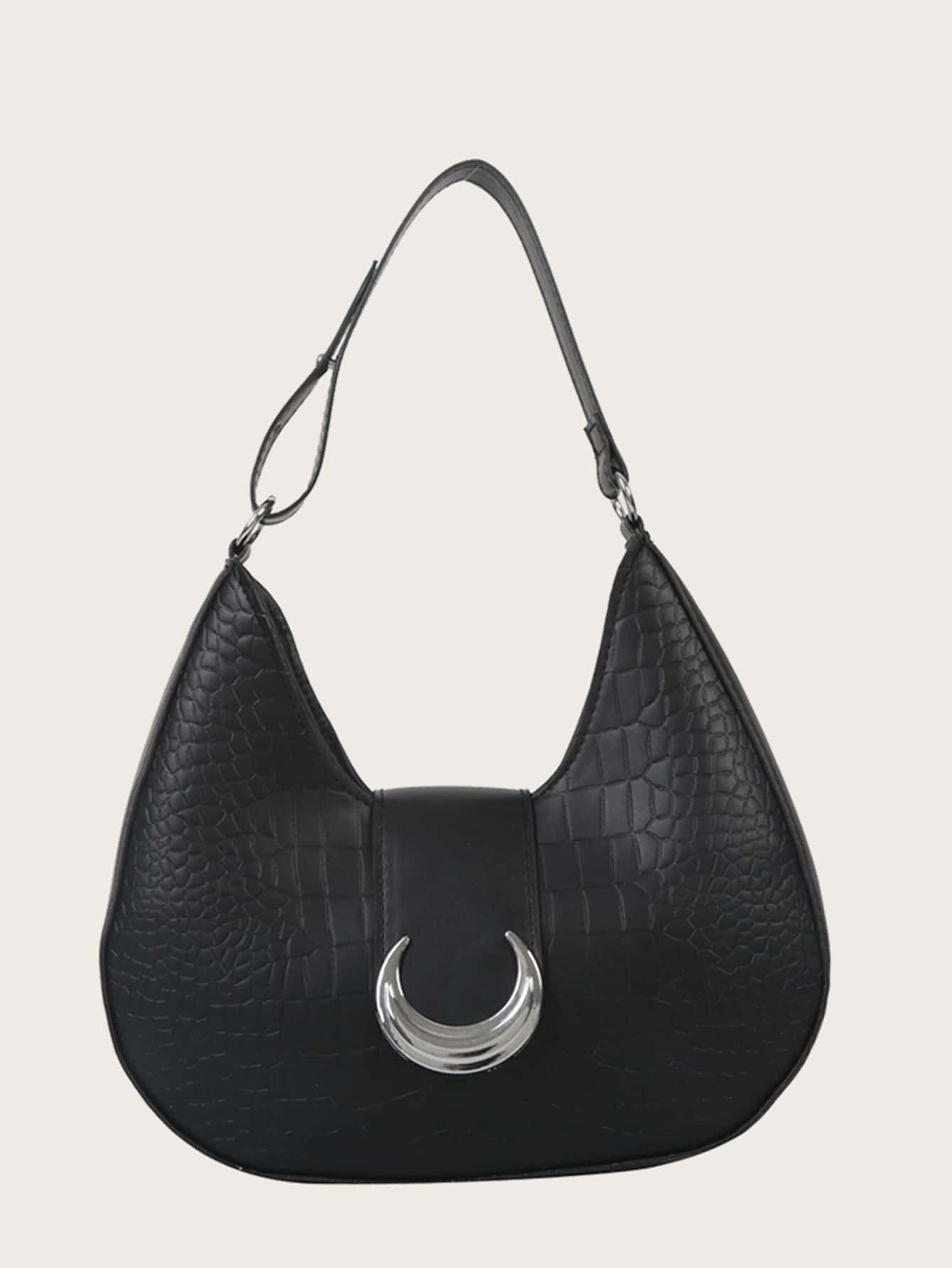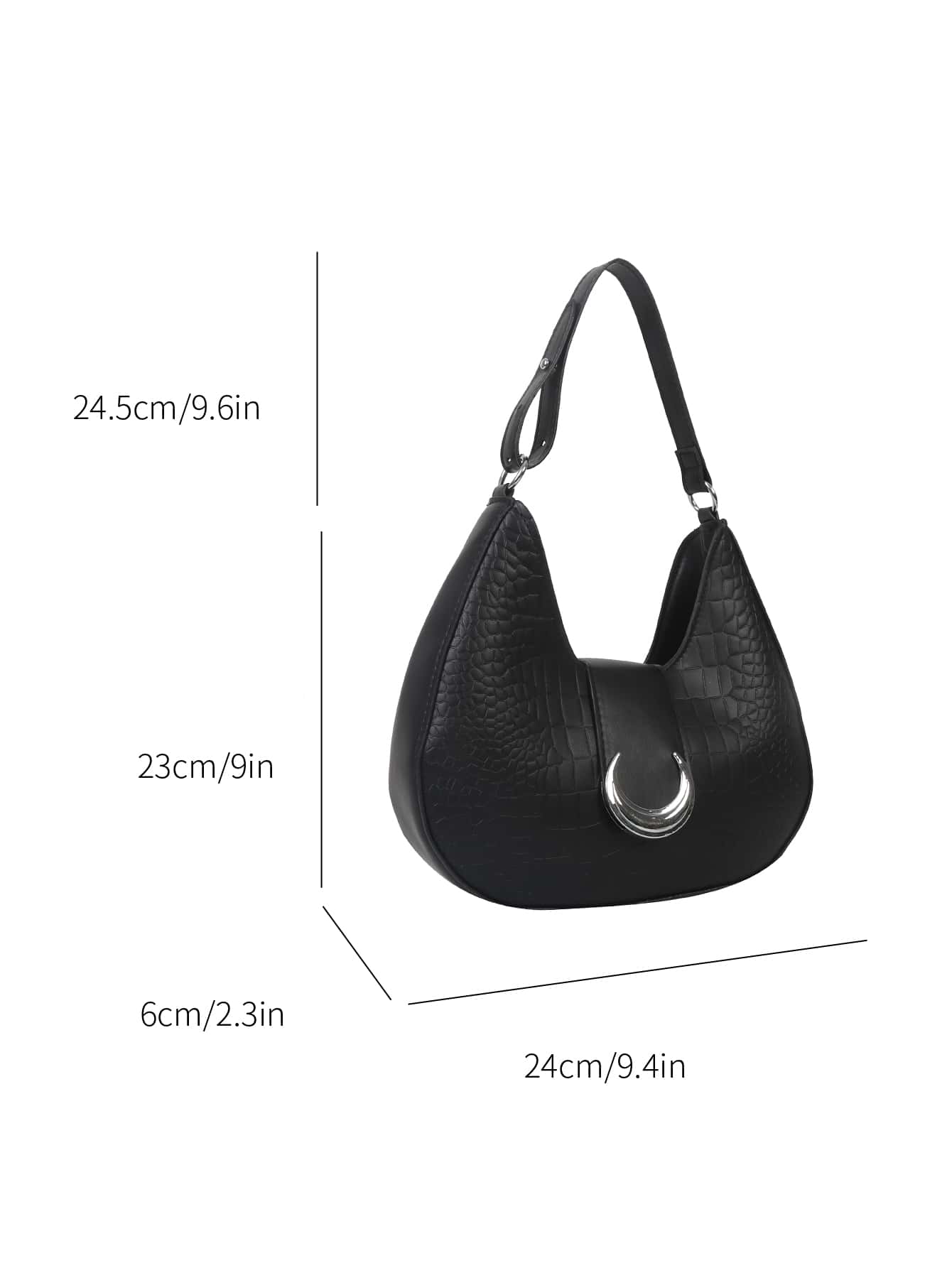 Crocodile Embossed Hobo Bag Metal Moon Decor Elegant