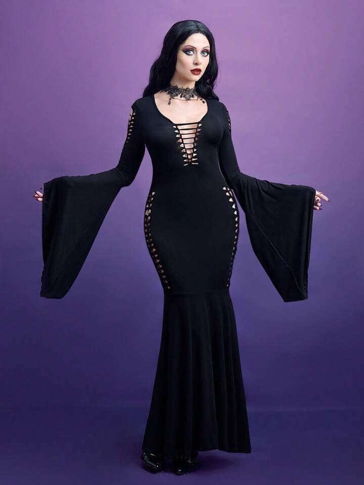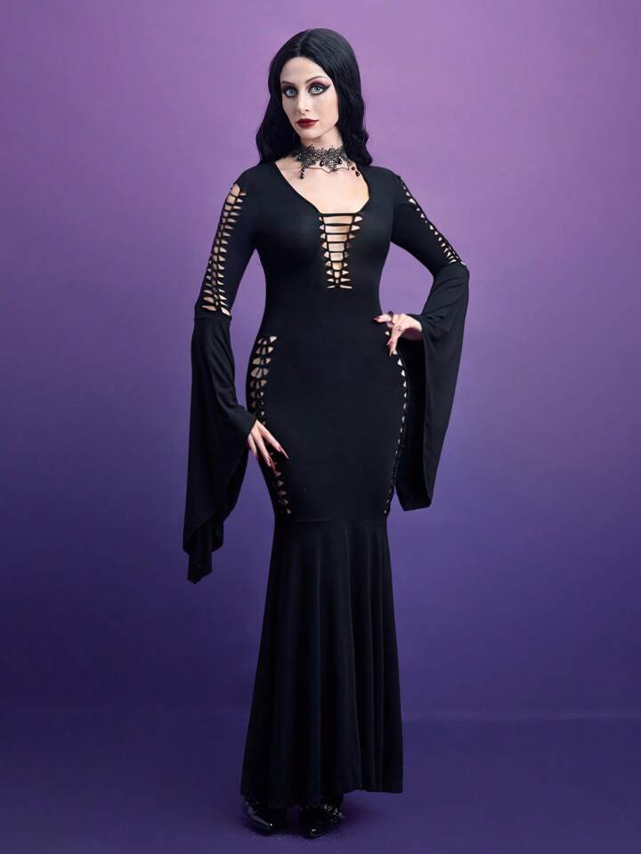 Cut Out Flounce Sleeve Fishtail Hem Dress