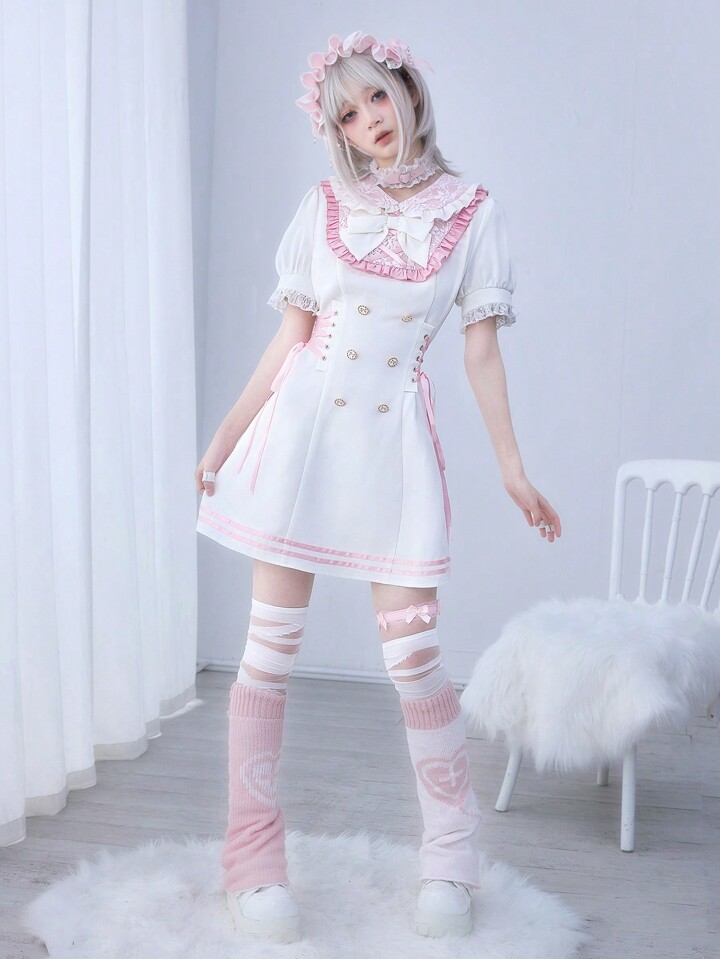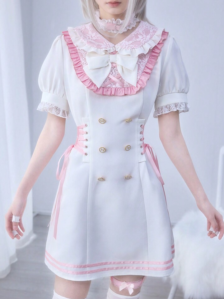 Cute Lolita Style Lace Patchwork A-Line Waist Cinched Mini Dress, Anime/Kawaii