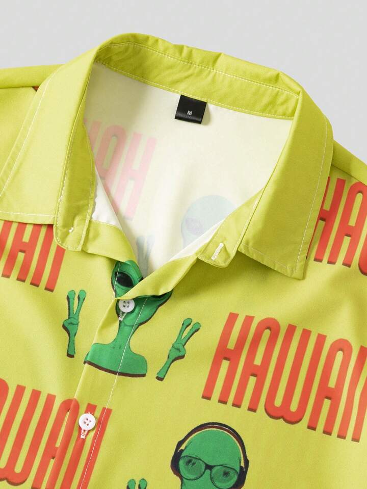 Cyber Luvr Guys Alien & Letter Graphic Shirt