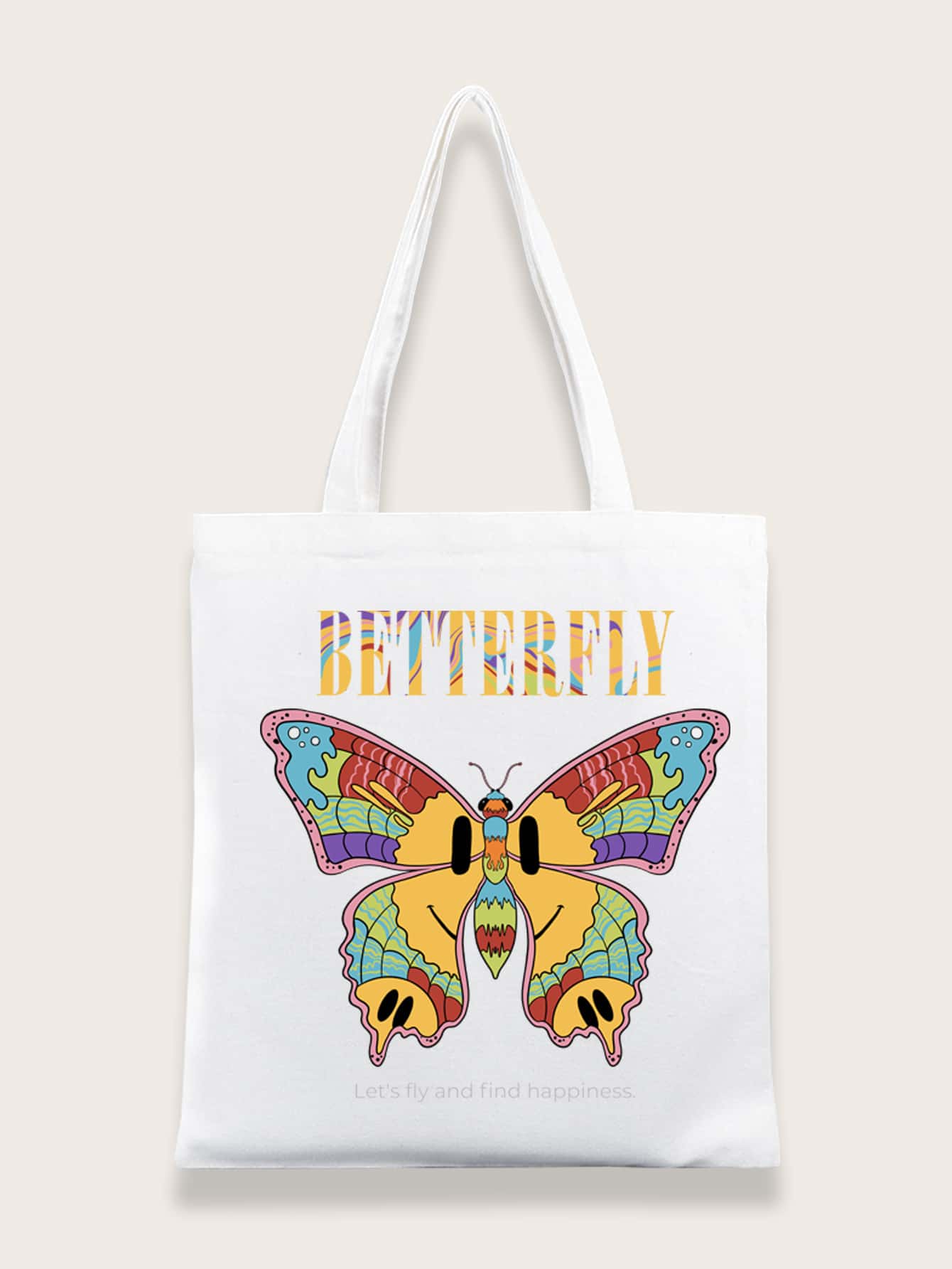 DOMINATE Letter & Butterfly Graphic Shopper Bag Canvas Casual