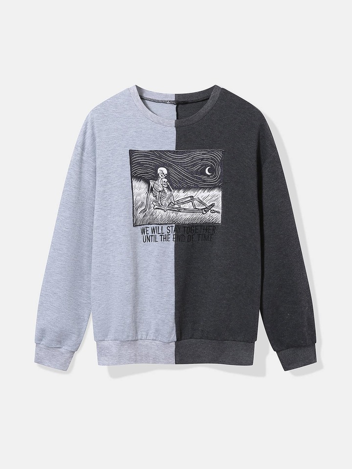 Danielevicentini Slogan Colorblock Skull Graphic Sweatshirt