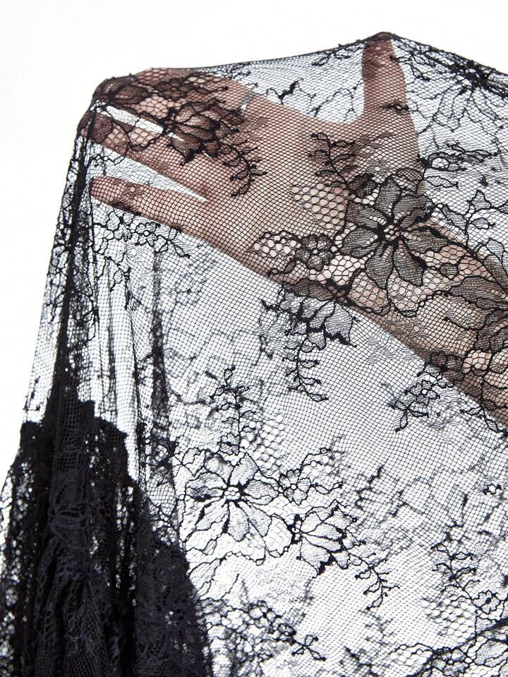Dark Gothic Heavily Laced Open Front Flare Sleeve Floor-Length Sheer Cardigan For Women
