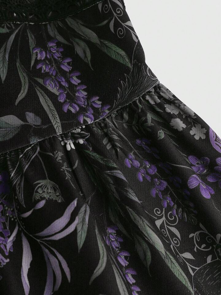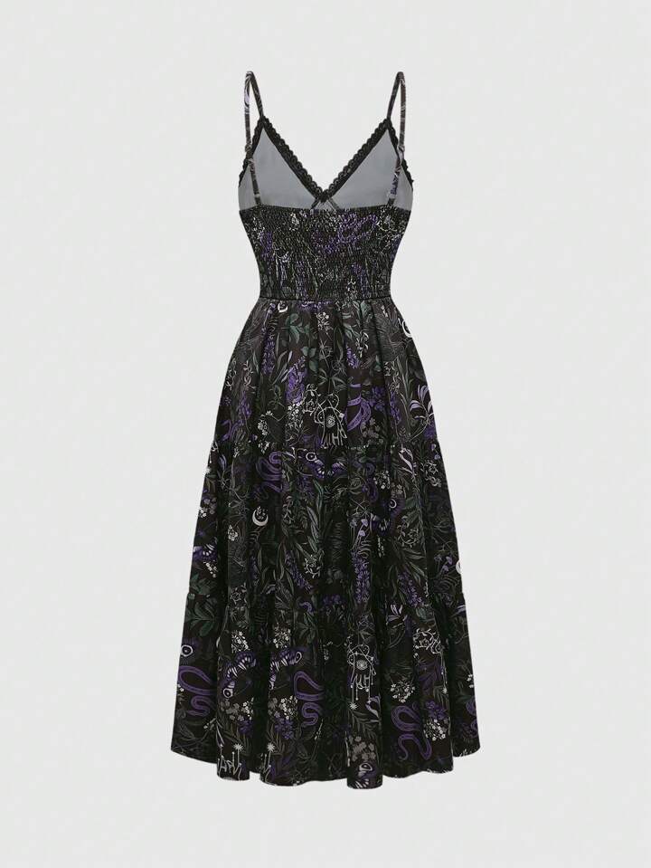 Dark Gothic Snake, Crow, Moth & Floral All Over Lace Panel Bodycon Mid-Calf Dress For Women