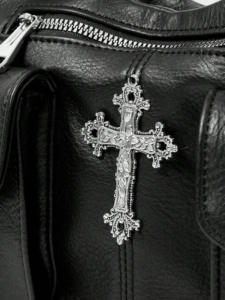 Dark Punk Gothic Style Cross Black Large Capacity Women Handbag Shoulder Bag