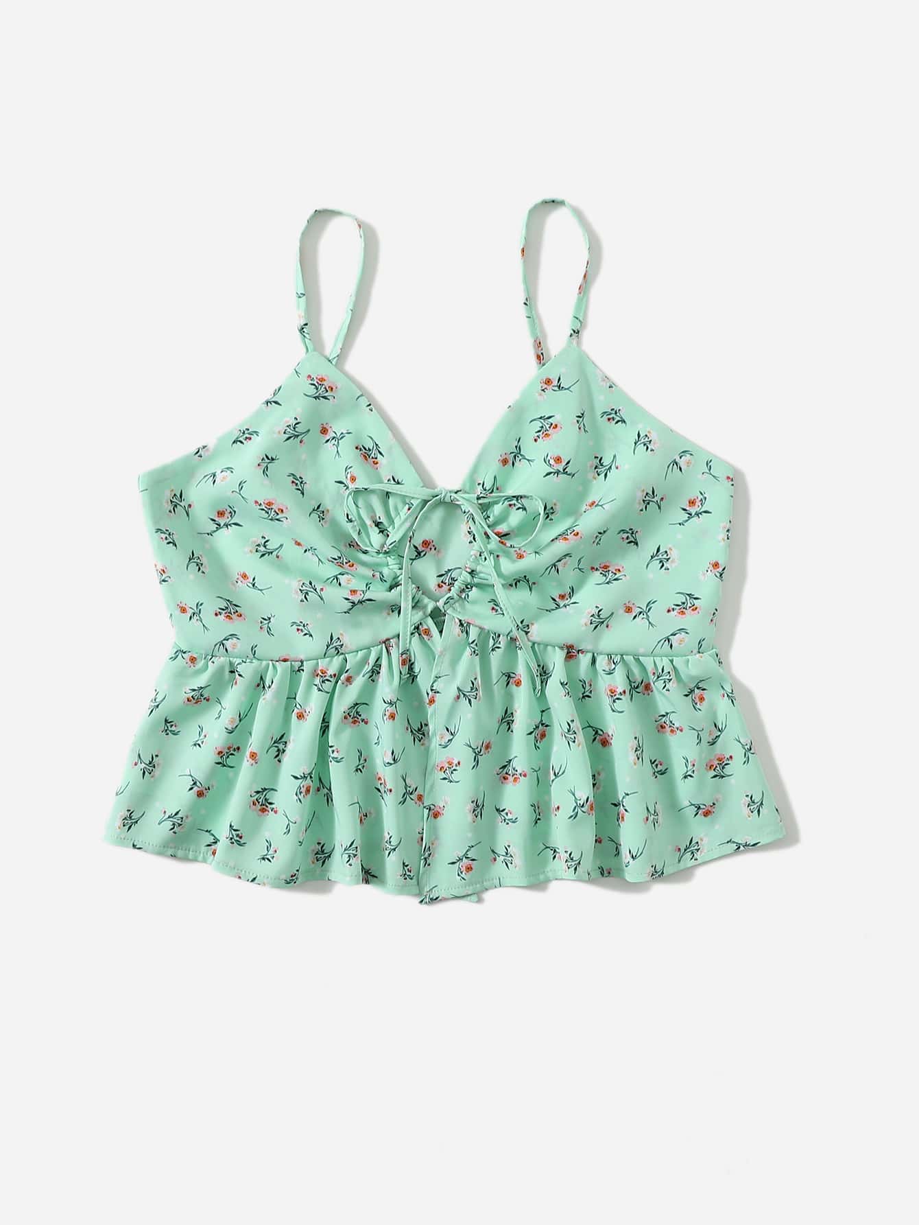 Ditsy Floral Drawstring Ruffle Hem Cami