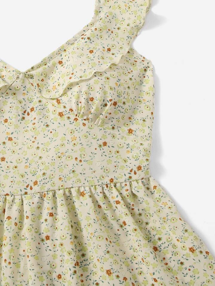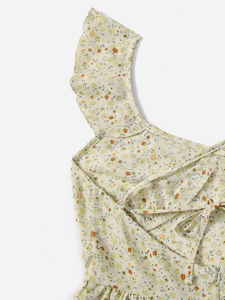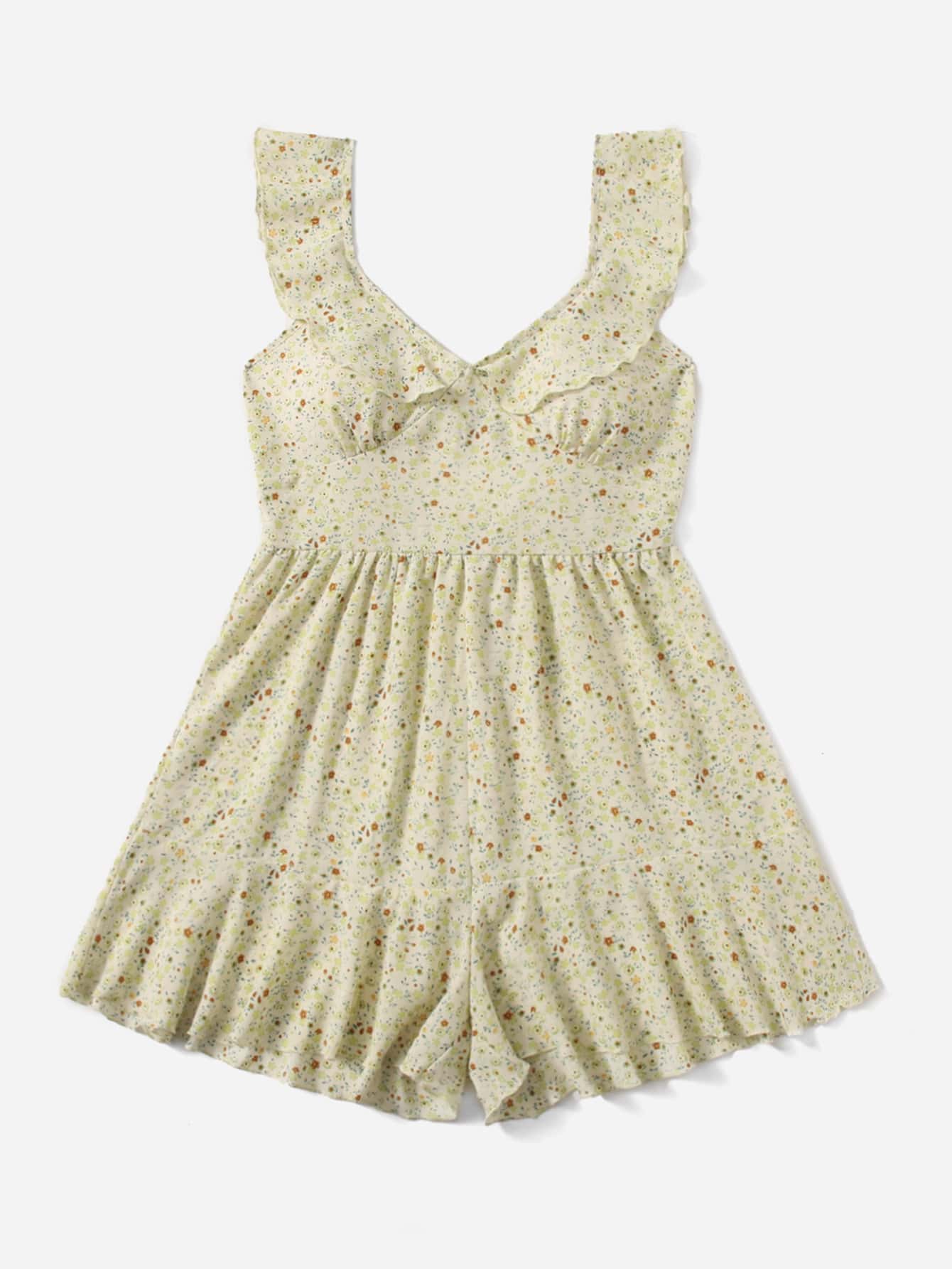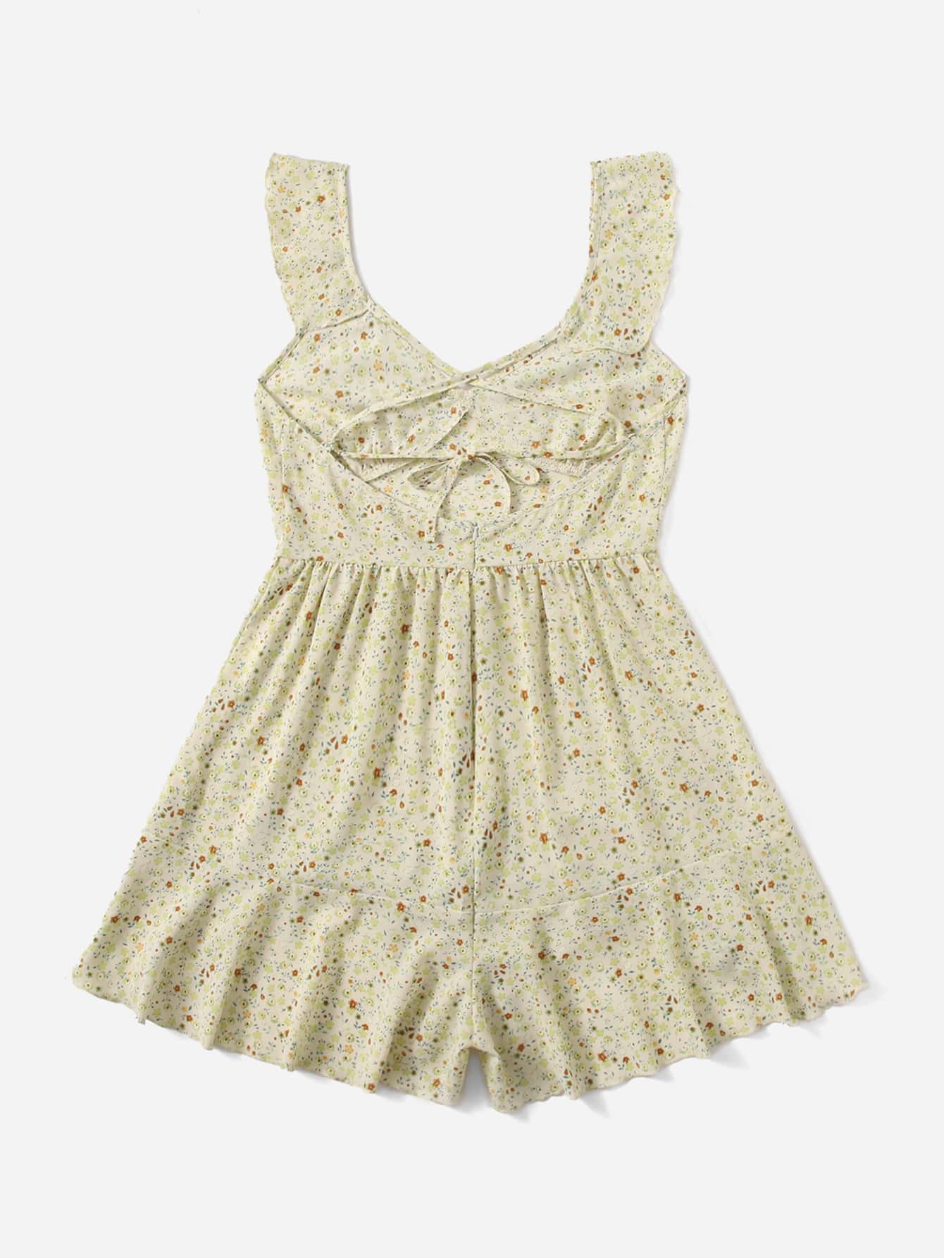 Ditsy Floral Ruffle Trim Tie Backless Romper