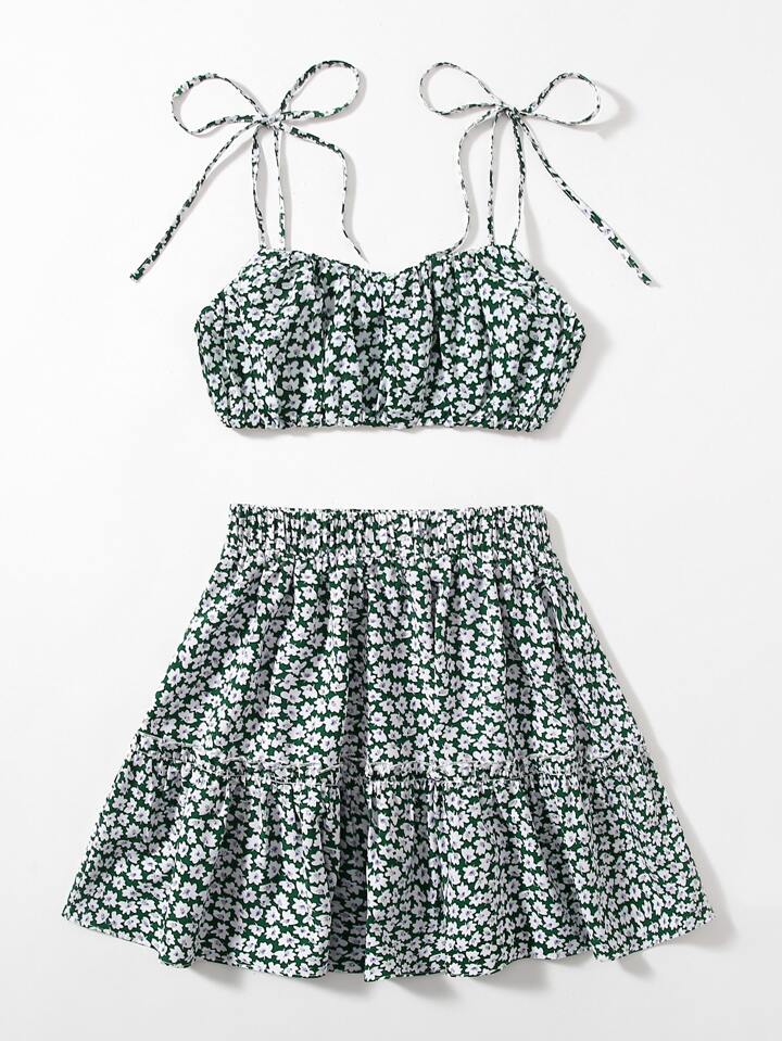 Ditsy Floral Tie Shoulder Cami Top & Skirt Set