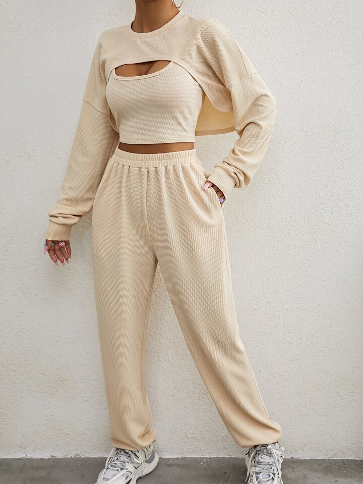 Drop Shoulder High Low Hem Pullover & Sweatpants With Tank Top
