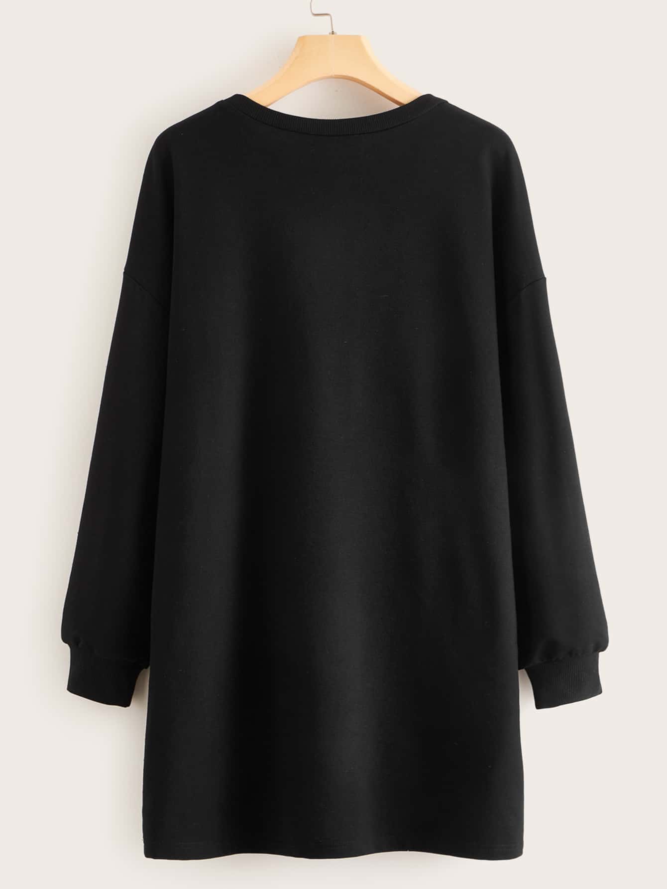 Drop Shoulder Slogan Graphic Sweatshirt Dress