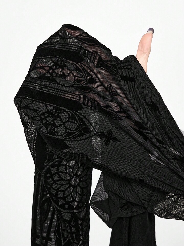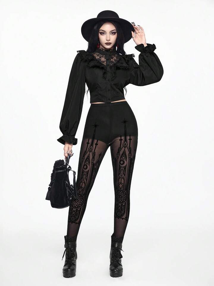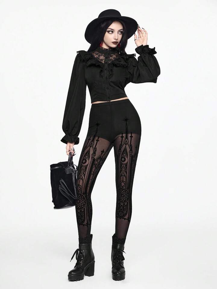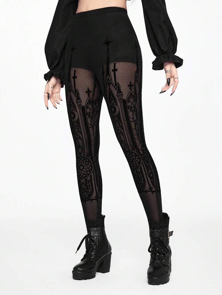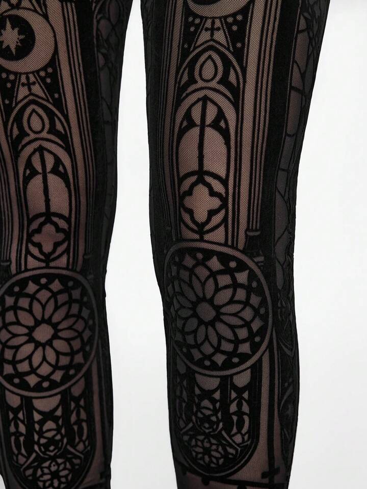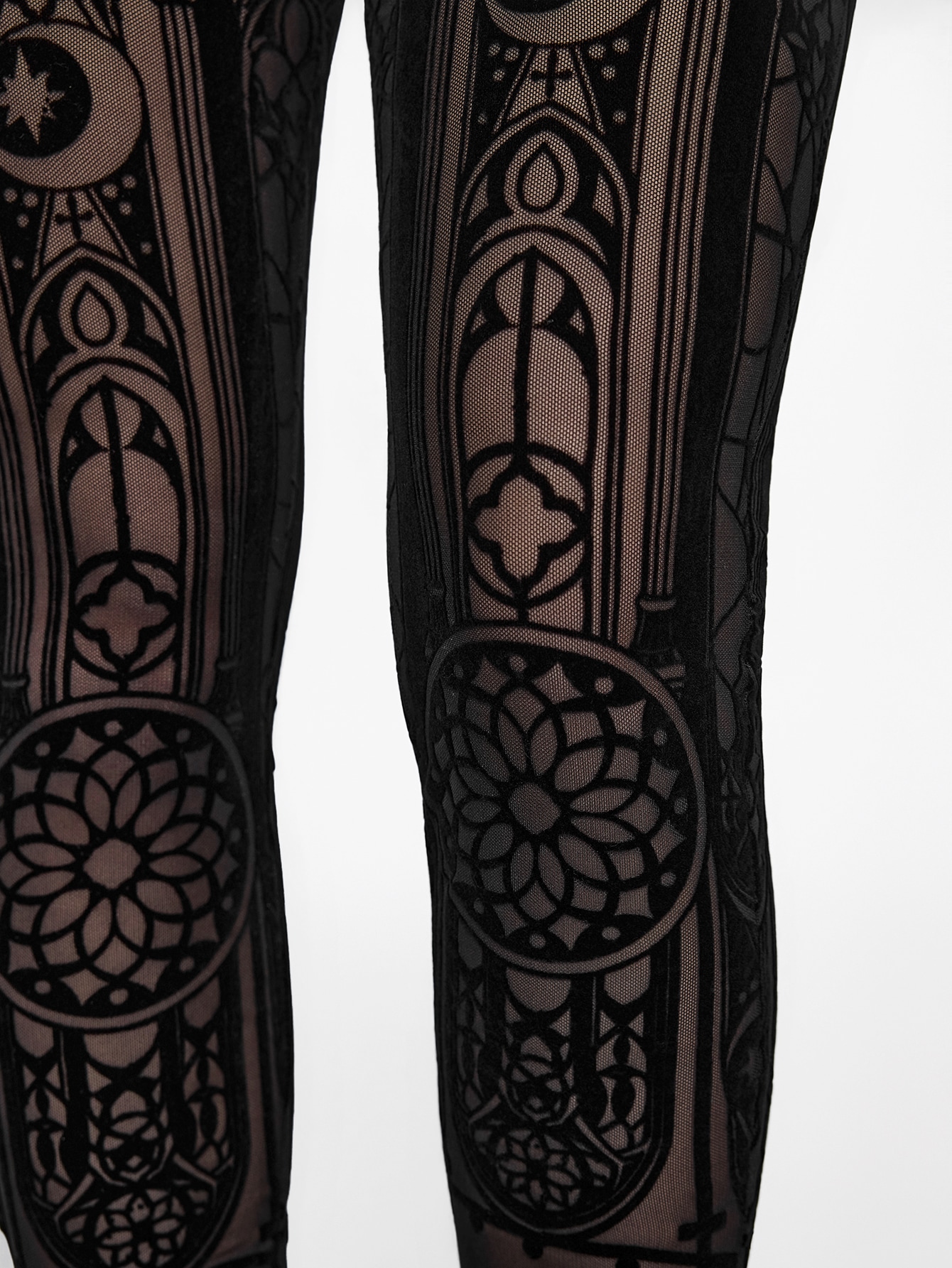 EDITION Gothic Palace Flocked Sheer Leggings For Women, Halloween