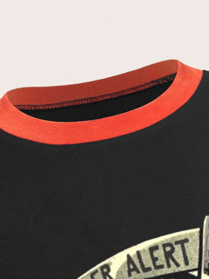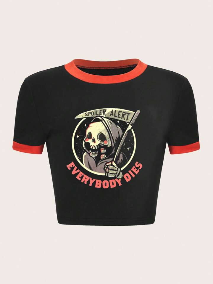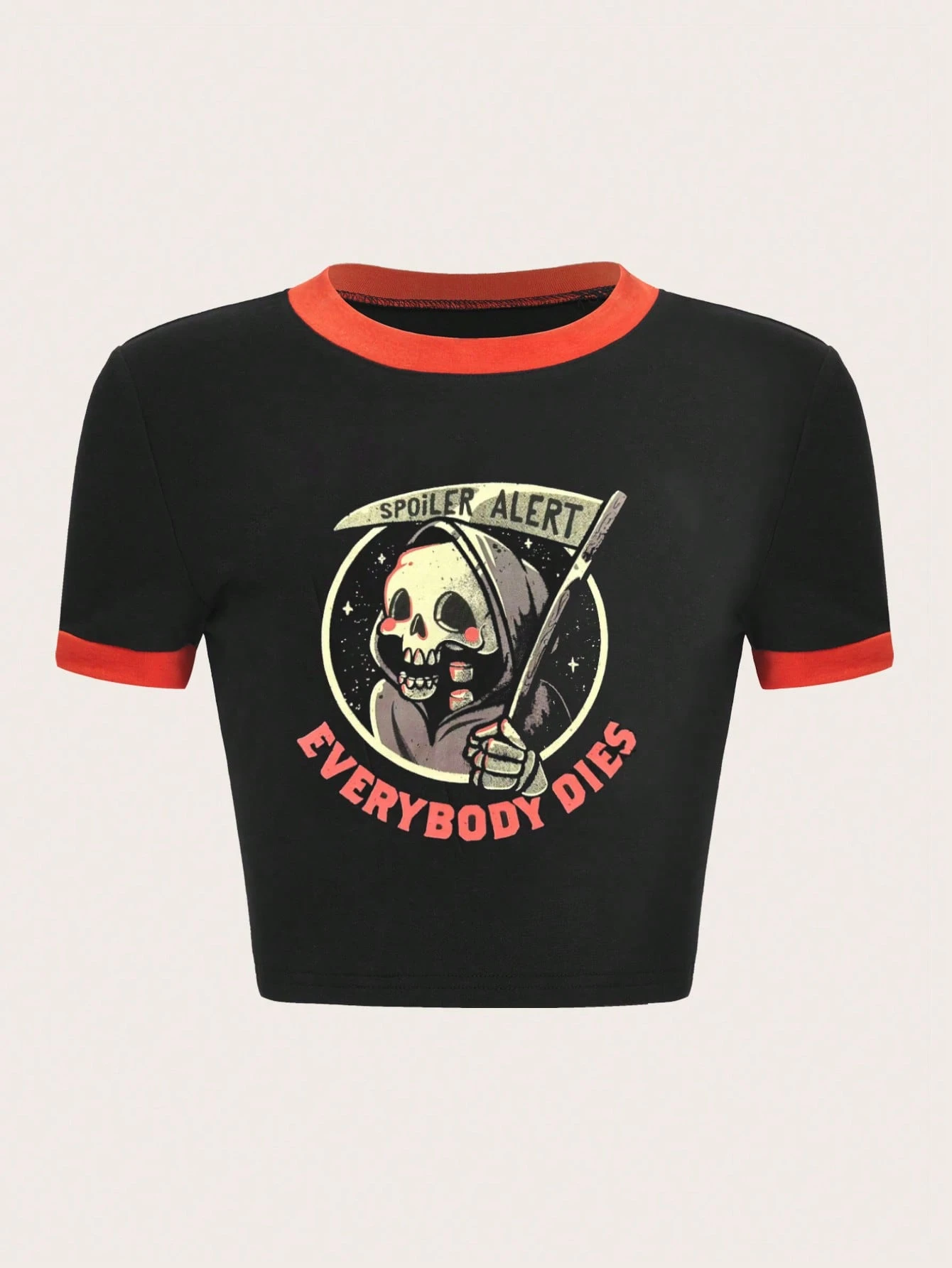 Eduely Slogan & Skull Print Contrast Binding Tee