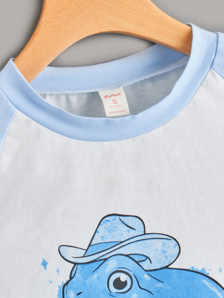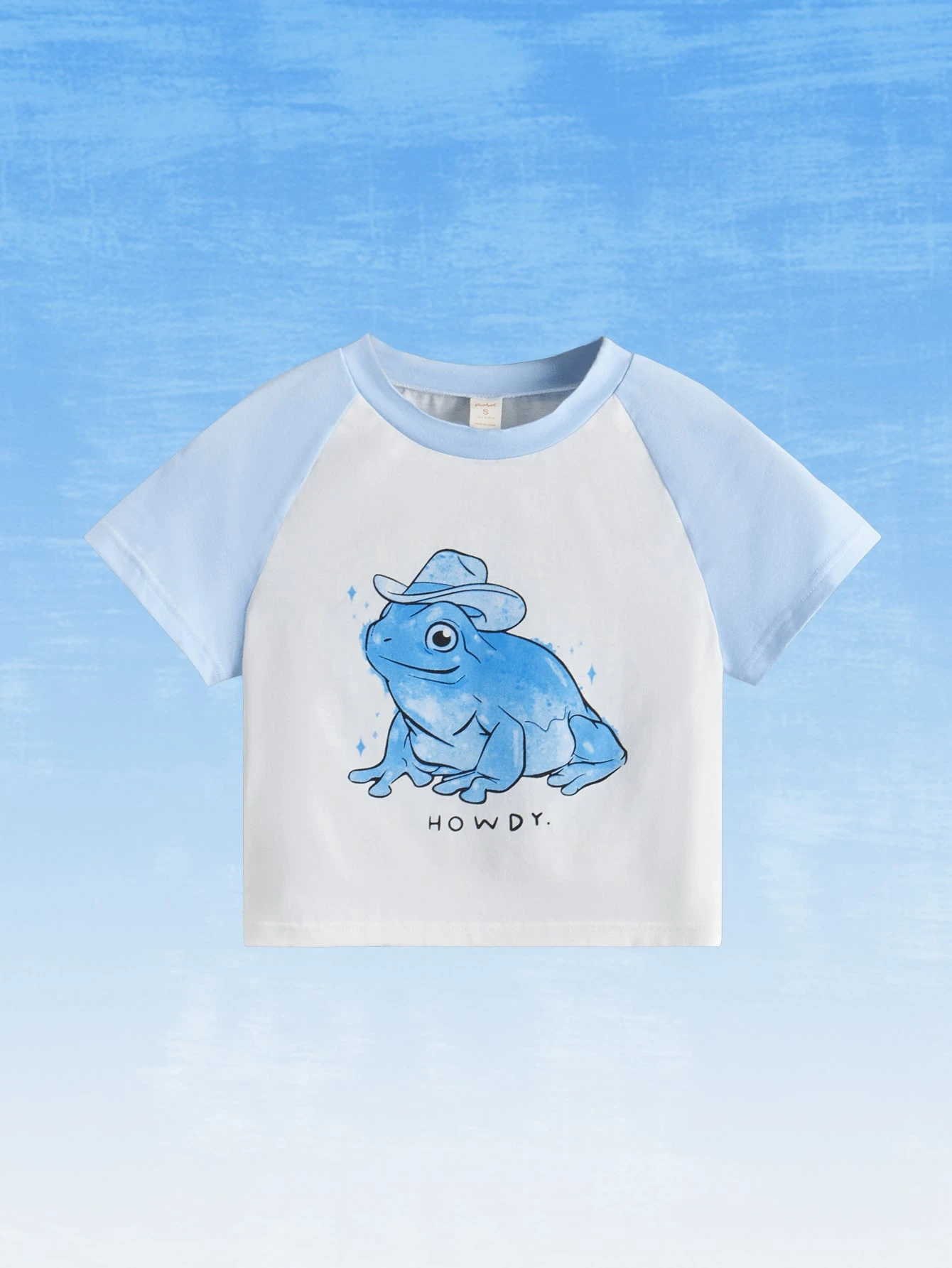 Elizabeth Graham Letter Cartoon Frog Graphic Colorblock Crop Tee