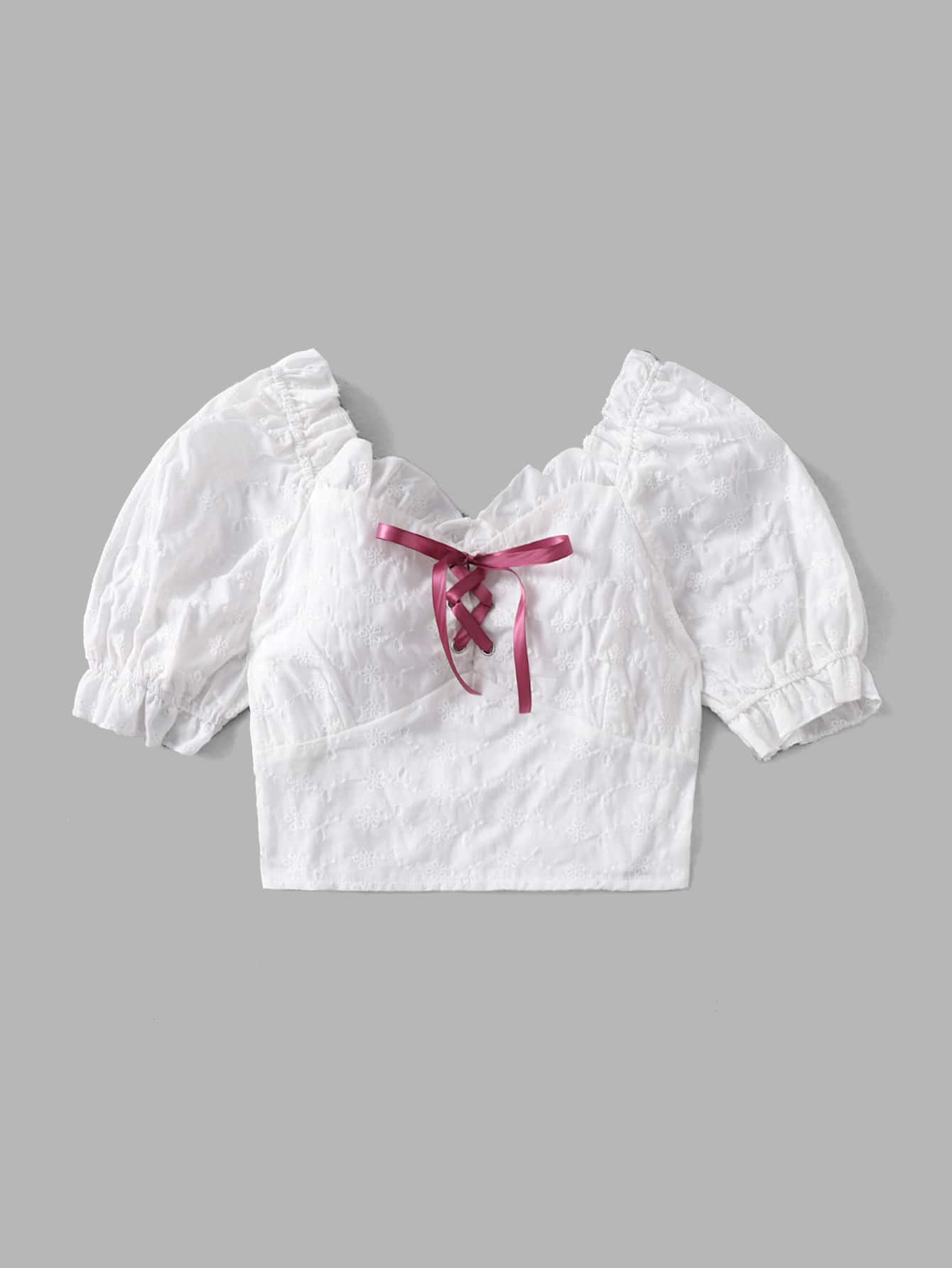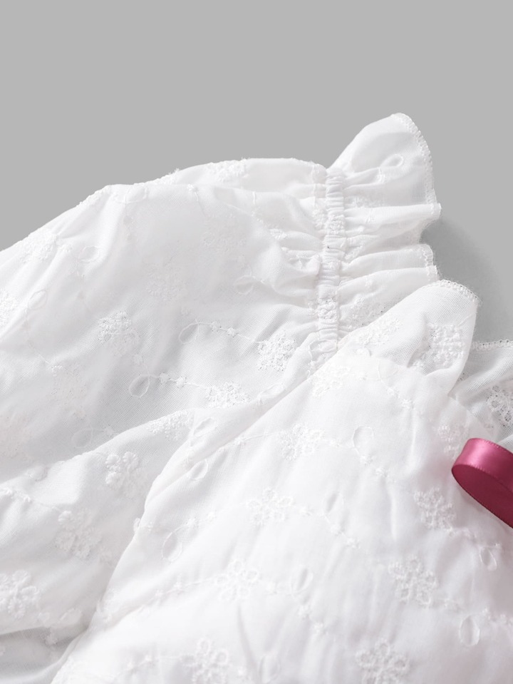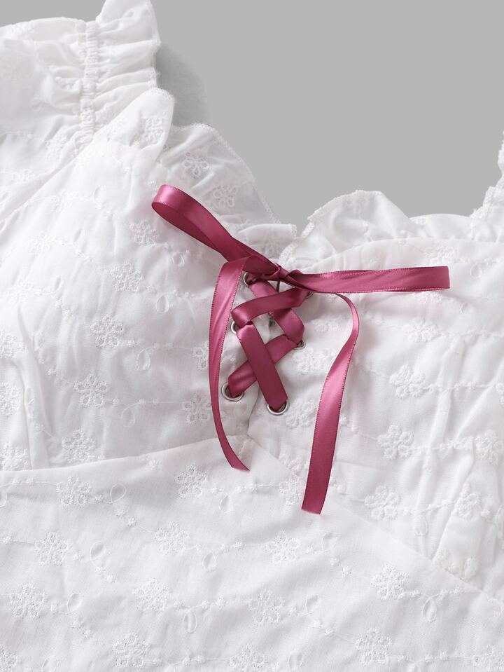Eyelet Embroidery Frill Trim Shirred Blouse