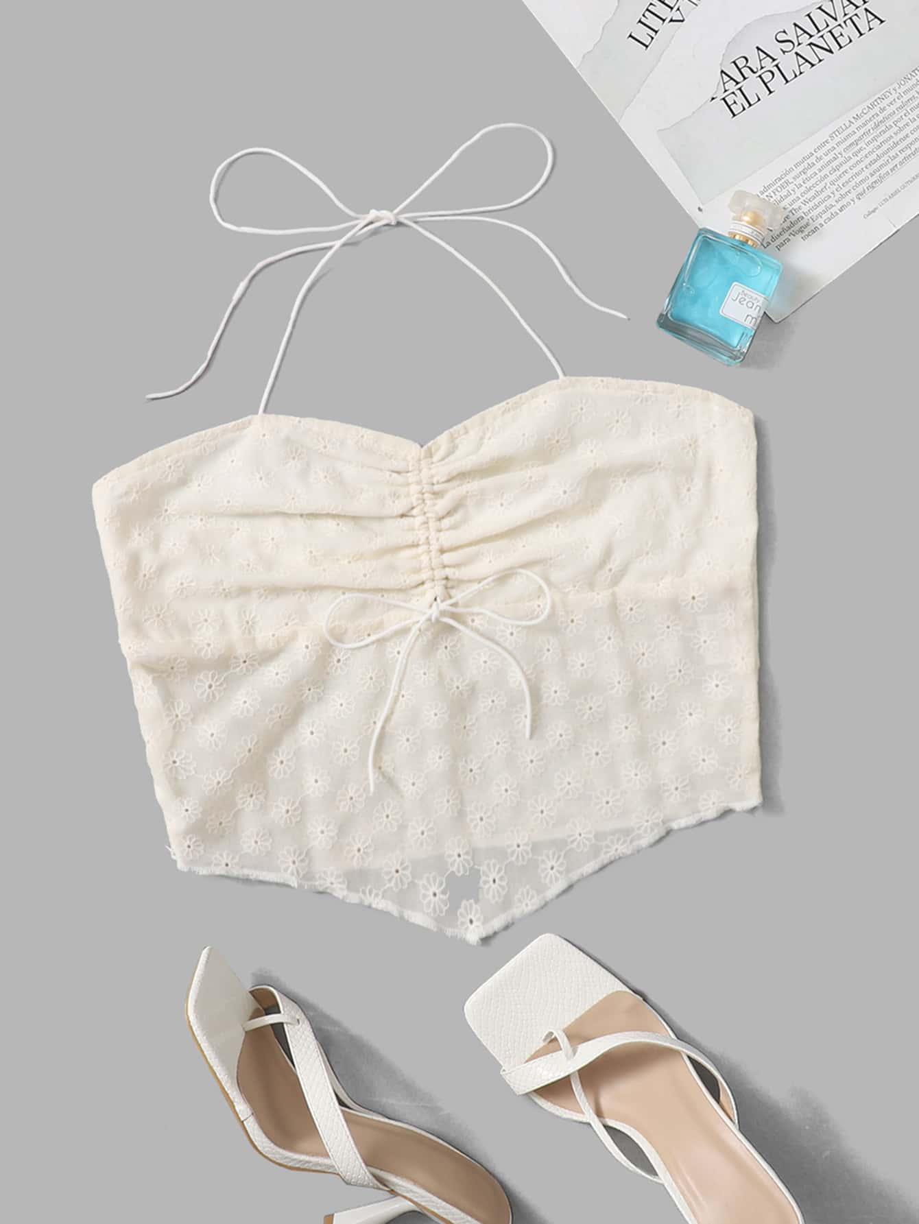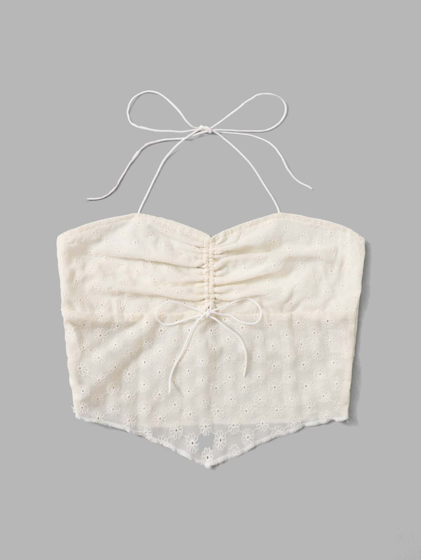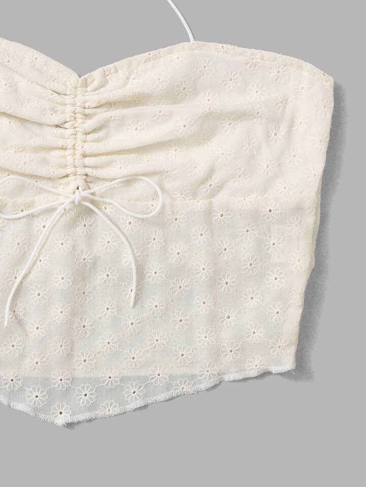 Eyelet Embroidery Ruched Halter Top