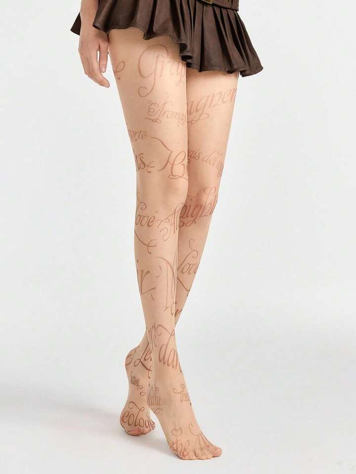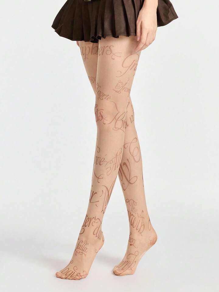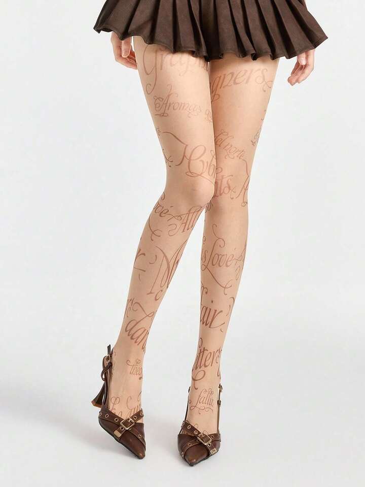 Fairycore 1 Pair Baddie English Print Tights, Y2K Minimalist Design Pantyhose, High Quality Non-Snagging Stirrup Socks, Super Thin Elastic Sheer Leggings