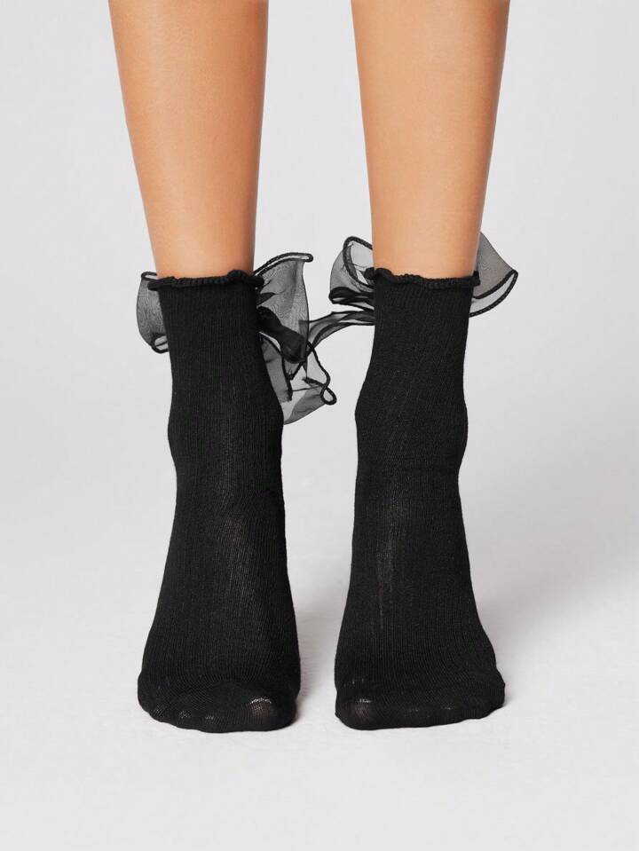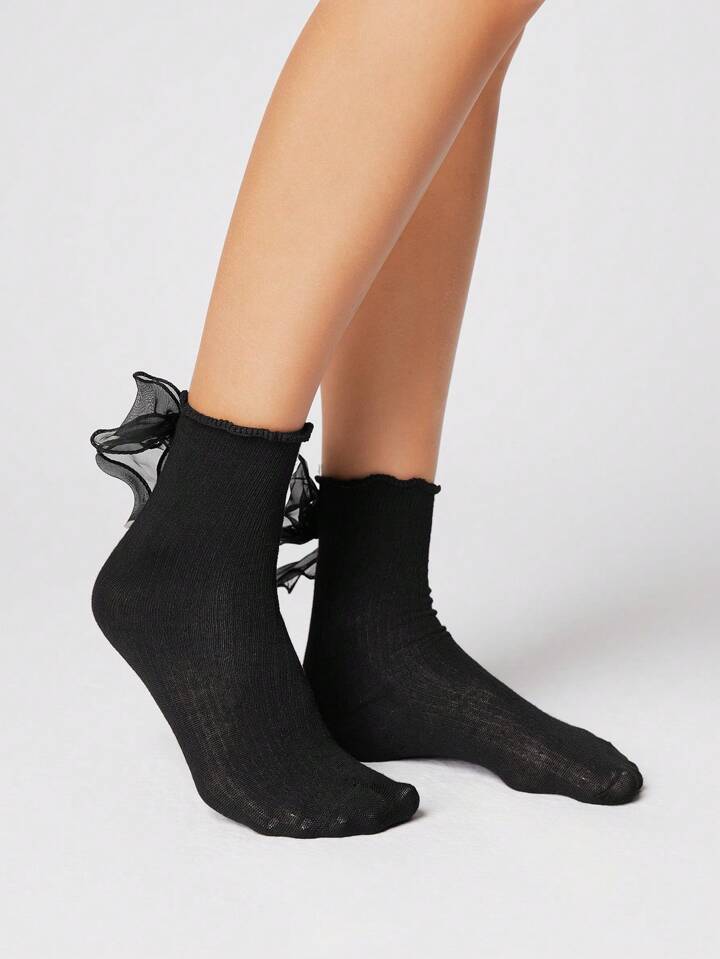 Fairycore 1 Pair Women's Kawaii Mesh Bow & Pearl Decorated Mid-Calf Socks, Versatile For All Seasons