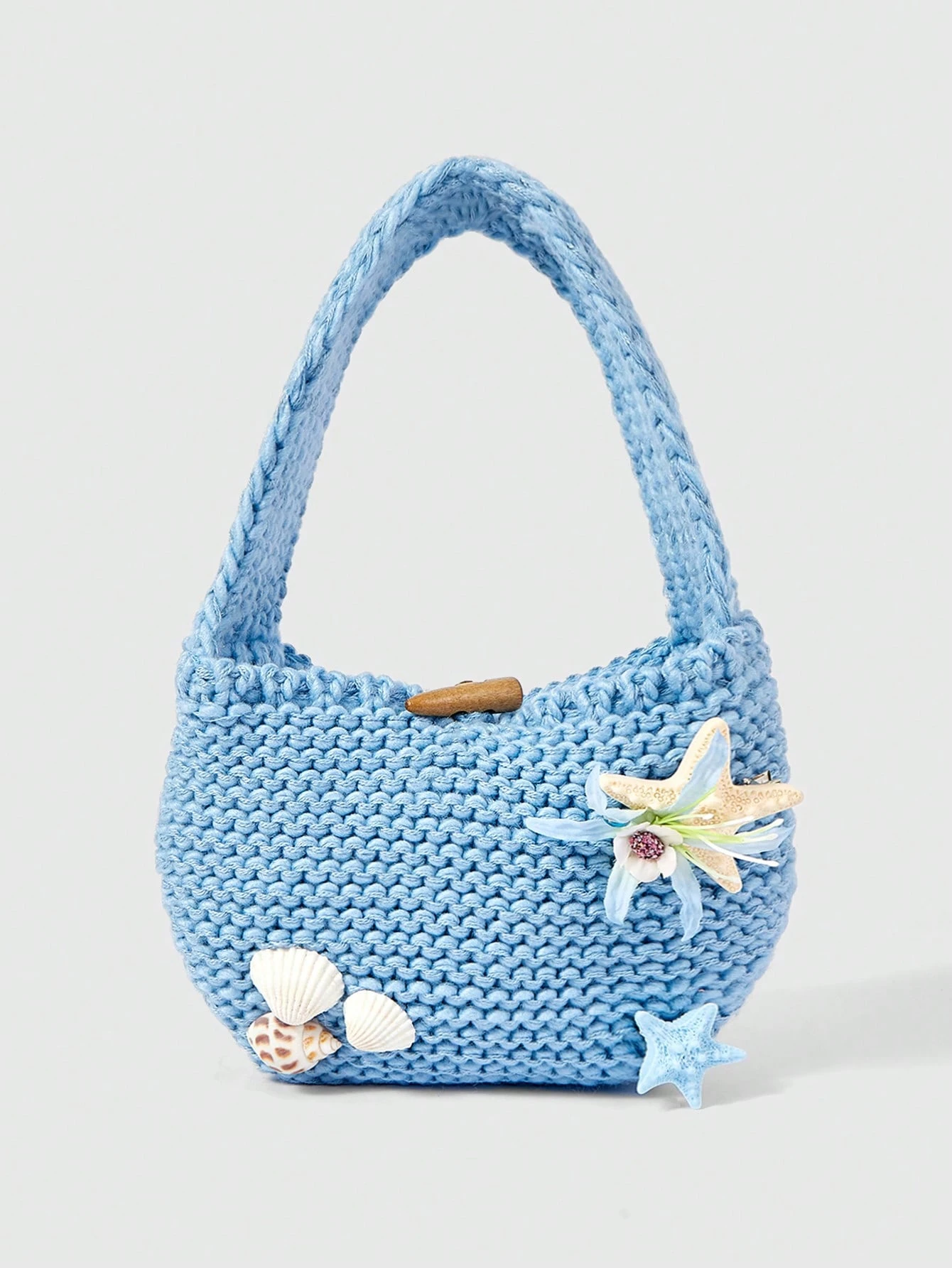 Fairycore 1 Summer Starfish And Shell Handbag, Knitted Wool Bag, Clutch