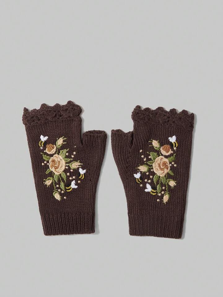 Fairycore 1pair Women Floral Pattern Embroidery Fingerless Gloves