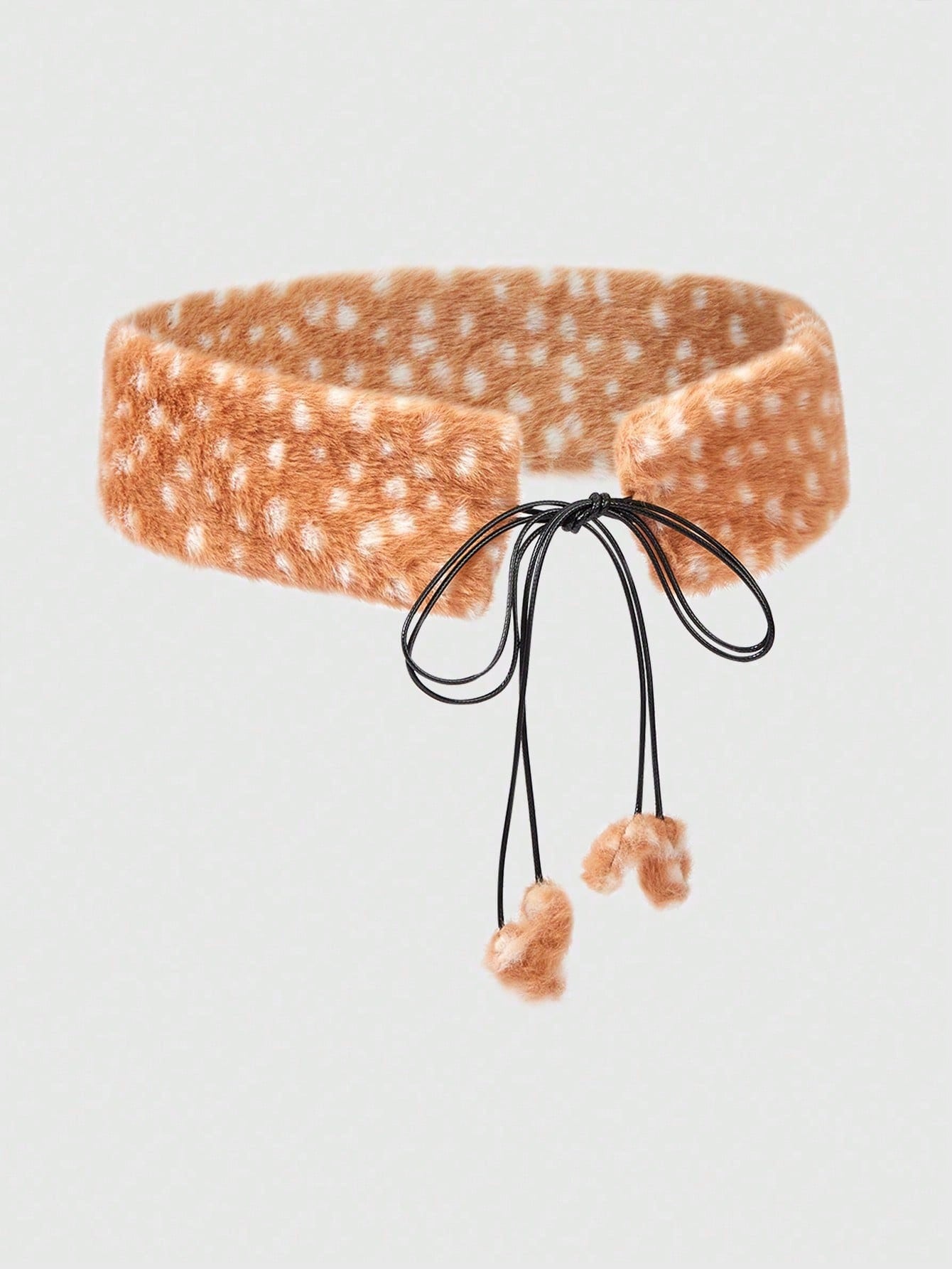 Fairycore 1pc Camel Deer Pattern Random Cut Fuzzy Adjustable Drawstring Waist Belt, Versatile Accessory For Scarf, Waist Wrap, Y2K Fashion, Suitable For Casual, Date, Shopping Occasions