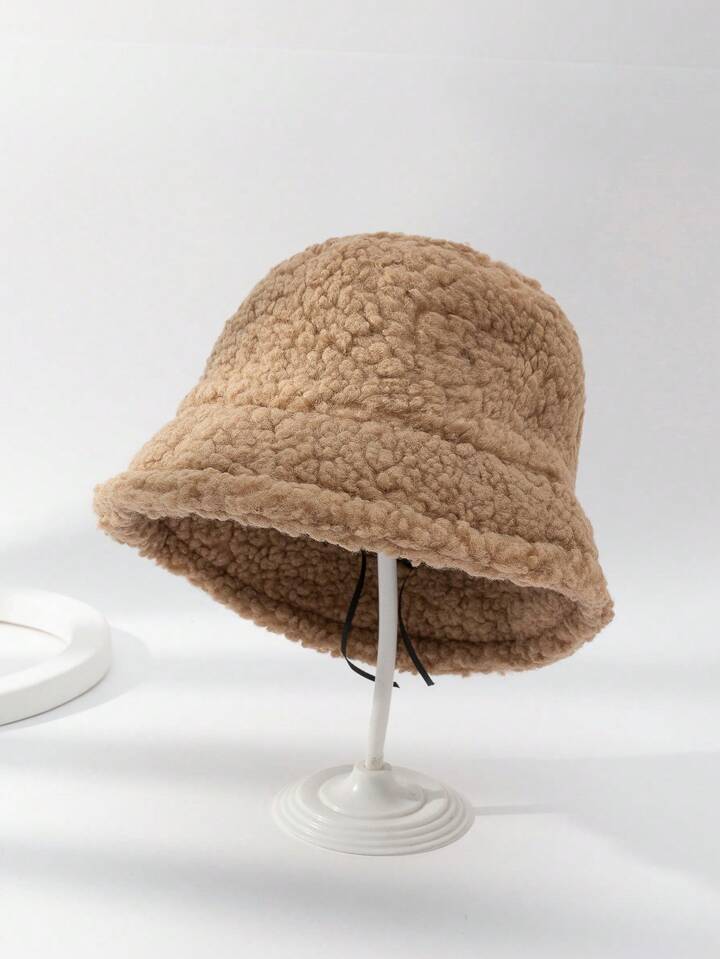 Fairycore 1pc Ladies' Thickened Warm Sheepskin Fluffy Bucket Hat