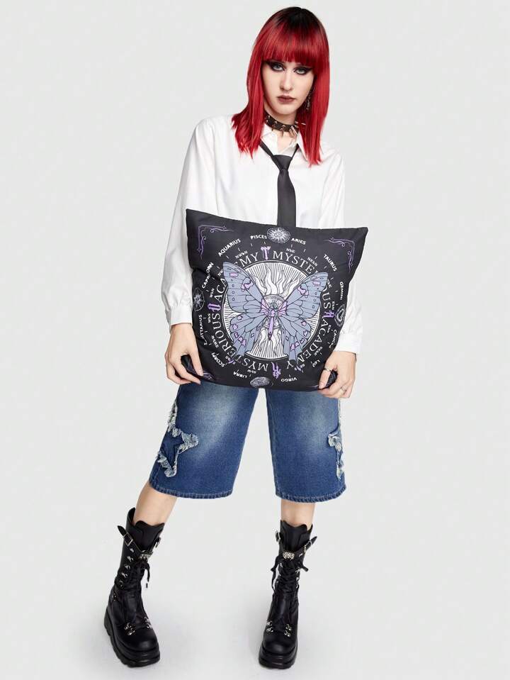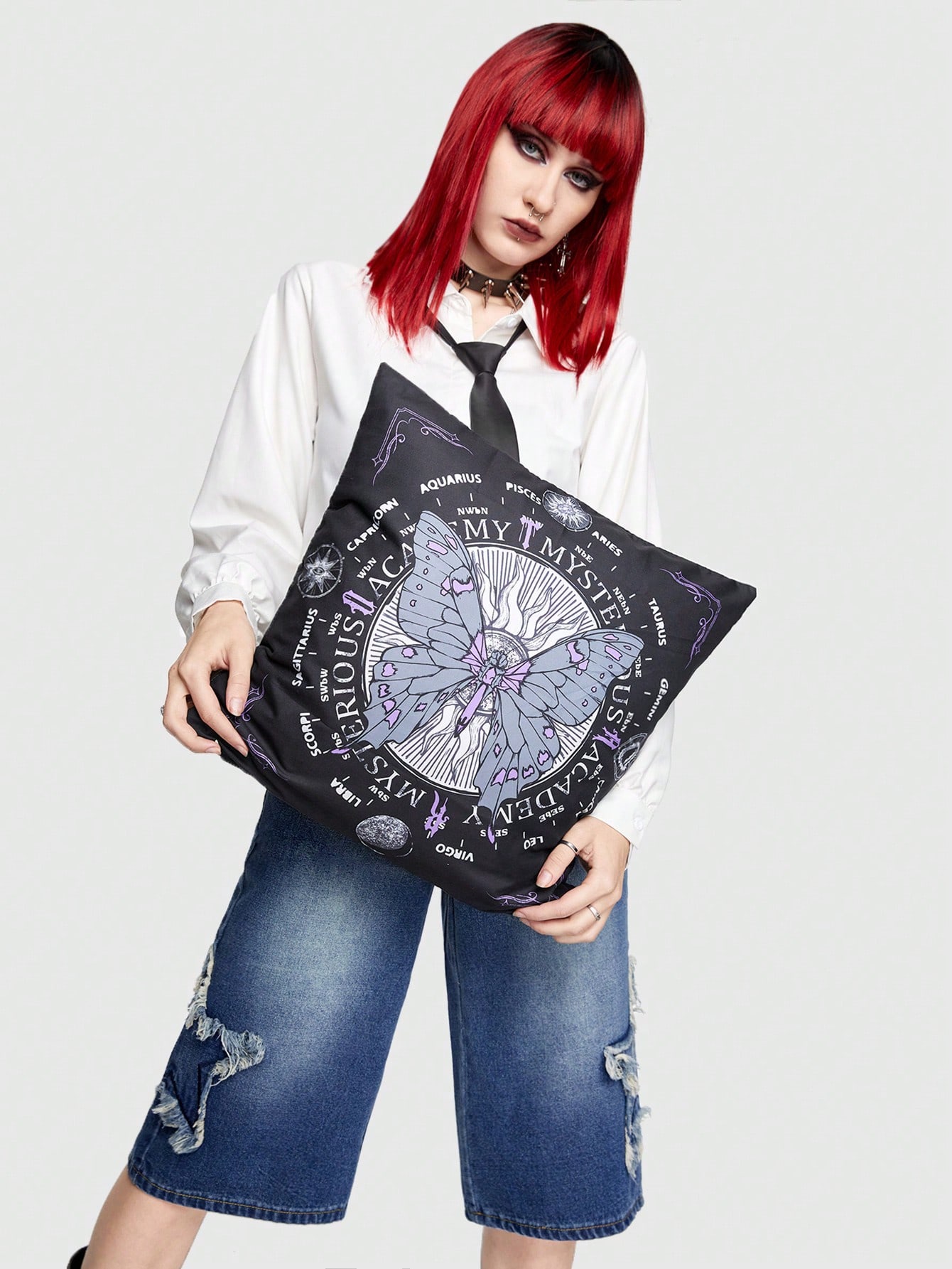 Fairycore 1pc Letter Butterfly Print Cushion Cover Without Filler,Casual Washable Decorative Square Pillowcase