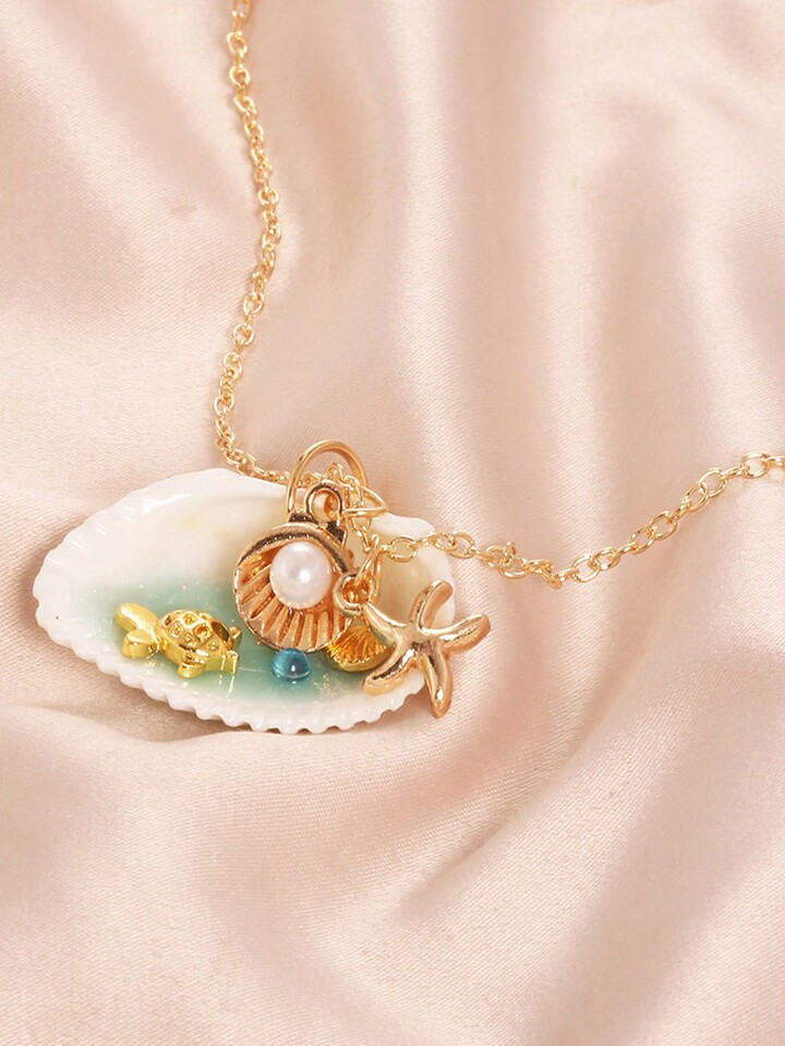 Fairycore 1pc Pearl & Shell Sea Turtle Pendant Necklace