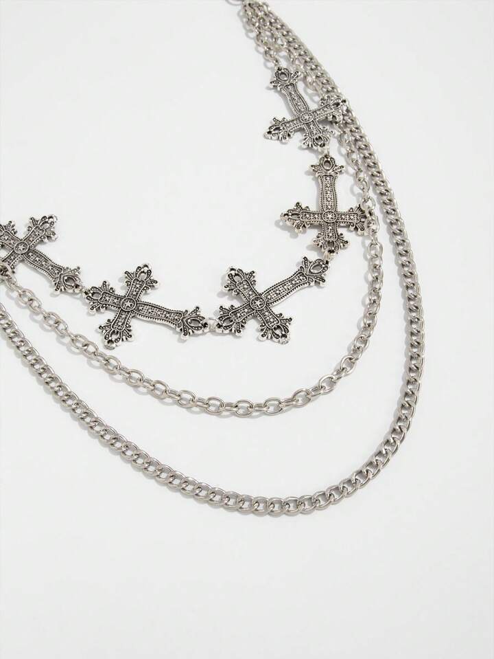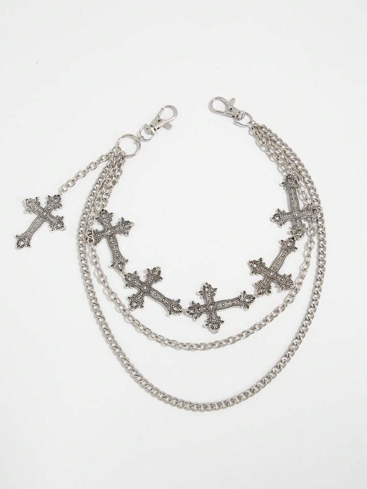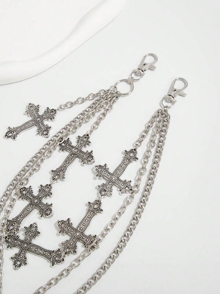 Fairycore 1pc Punk Style Cross Chain Waist Belt, Multi-Layer Iron Alloy Chain Body Chain, Women Personalized Charm Pants Chain, For Pants Decoration, Casual, Music Festival, Party Accessory