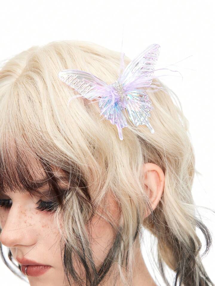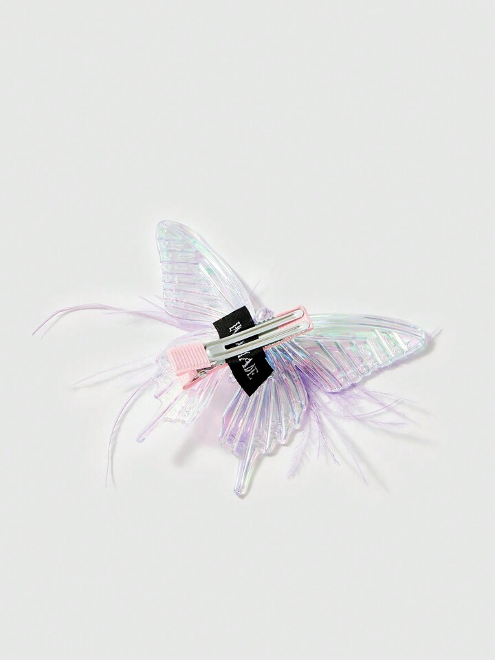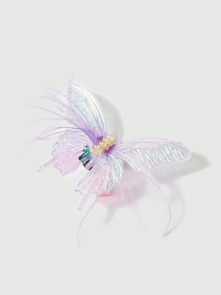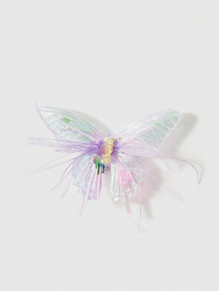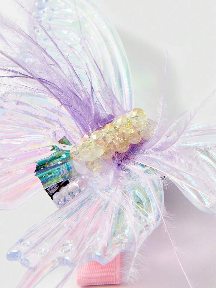 Fairycore 1pc Purple Feather & Crystal Butterfly Hair Clip, Fairy Ballet Princess Style Headwear Alligator Hair Clip