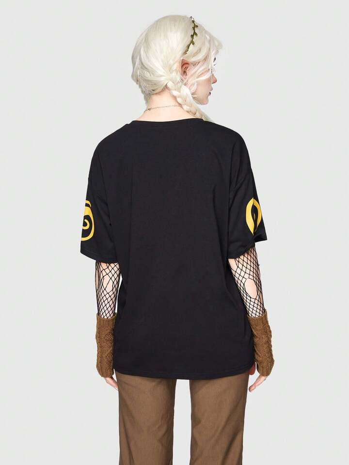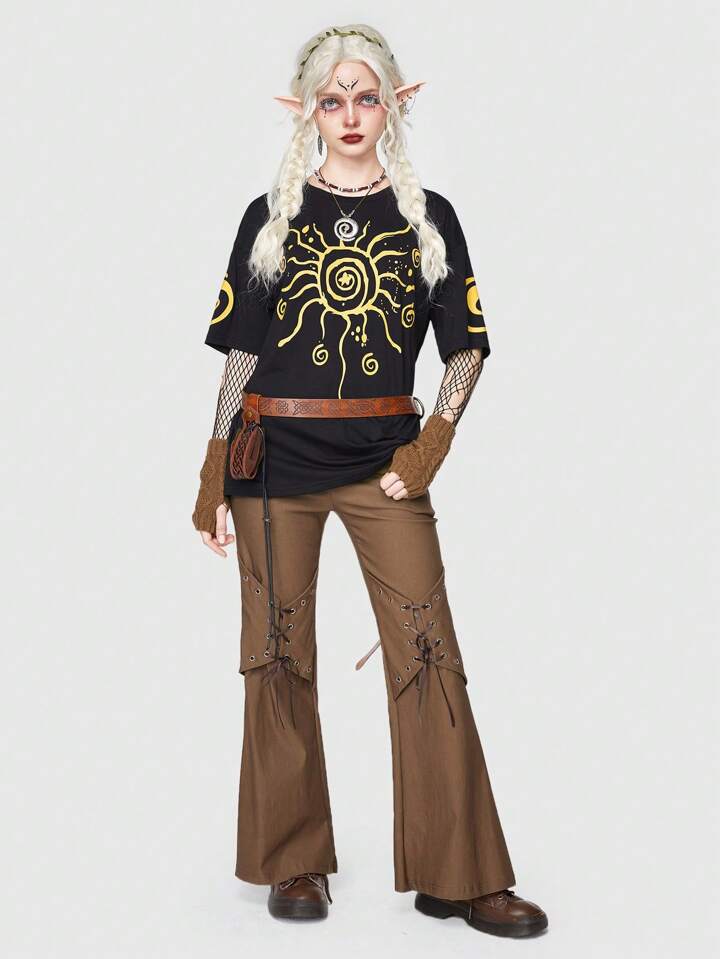 Fairycore 1pc Sun Print Short Sleeve Tee Without Belt