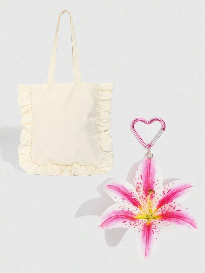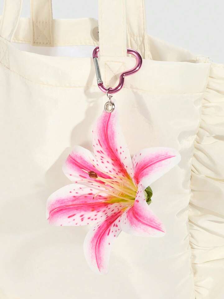 Fairycore 1pc Sweet Ombre Dotted Lily Flower Decor Heart Keychain, Beachy Resort Vibe Wedding Holiday Gift Bag Charm Suitable For Back To School Season Teens