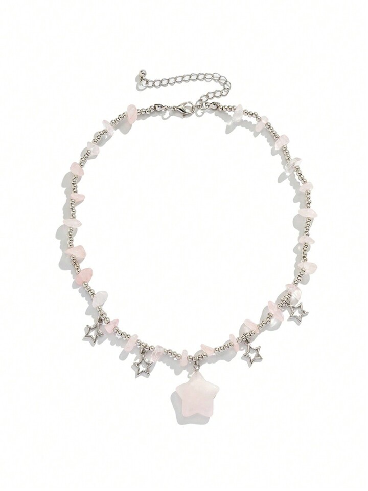 Fairycore 1pc Sweet Style Asymmetric Crushed Stone & Star & Round Beads Necklace