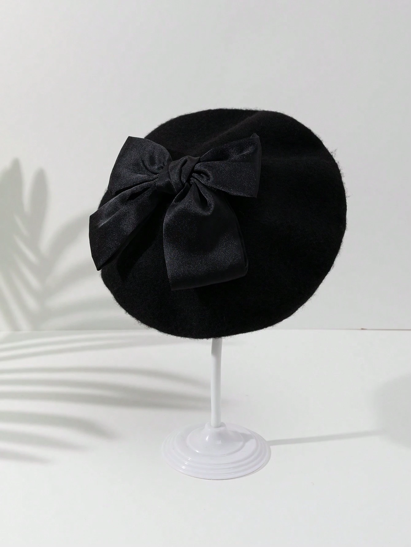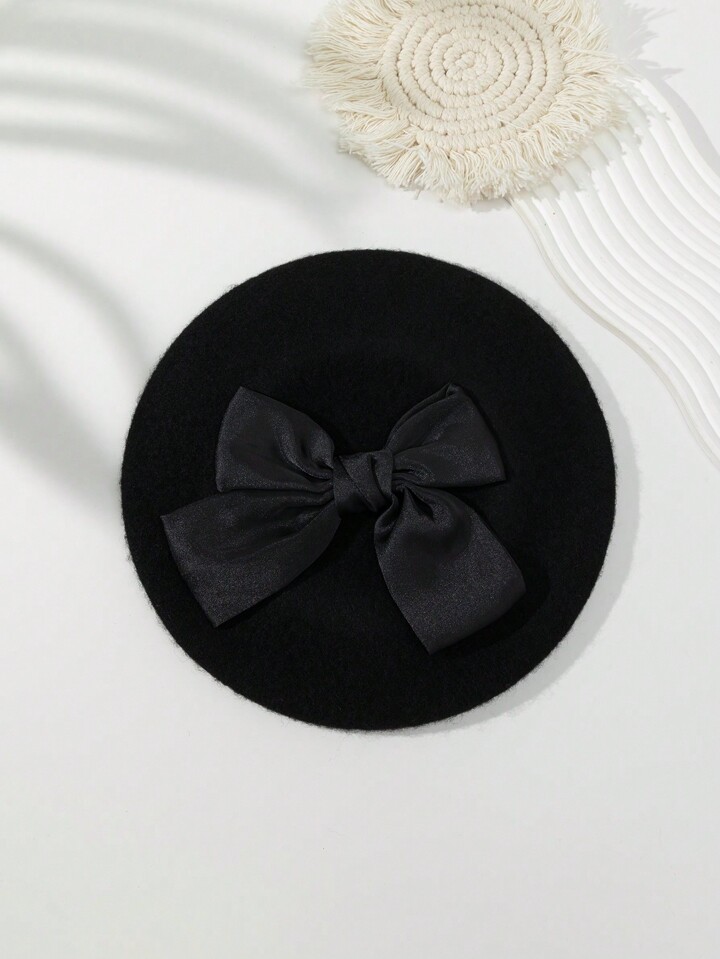Fairycore 1pc Women Solid Bow Decor Beret Hat