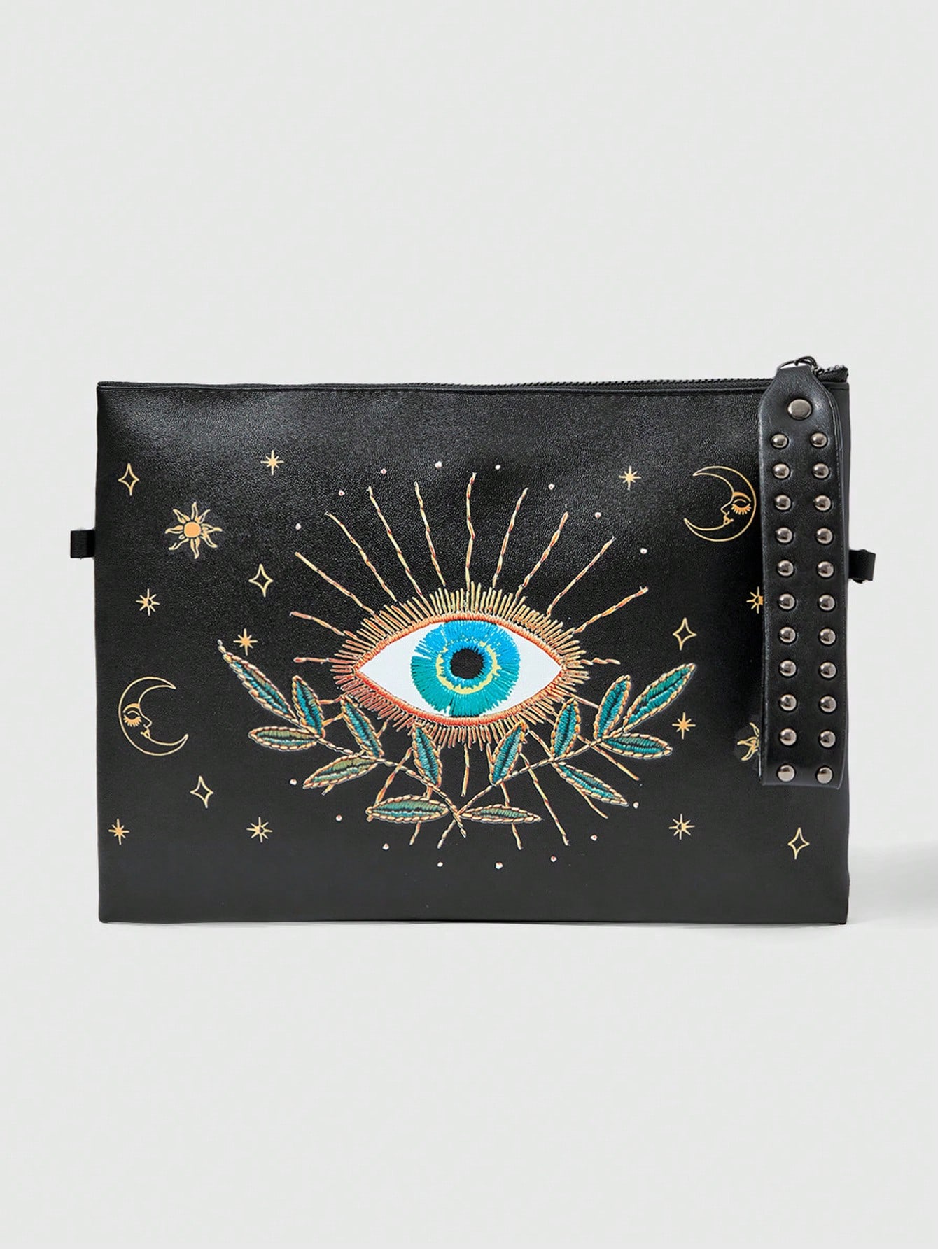 Fairycore 1pc Women's Clutch Bag With Eye, Vine, Sun, Moon & Star Pattern