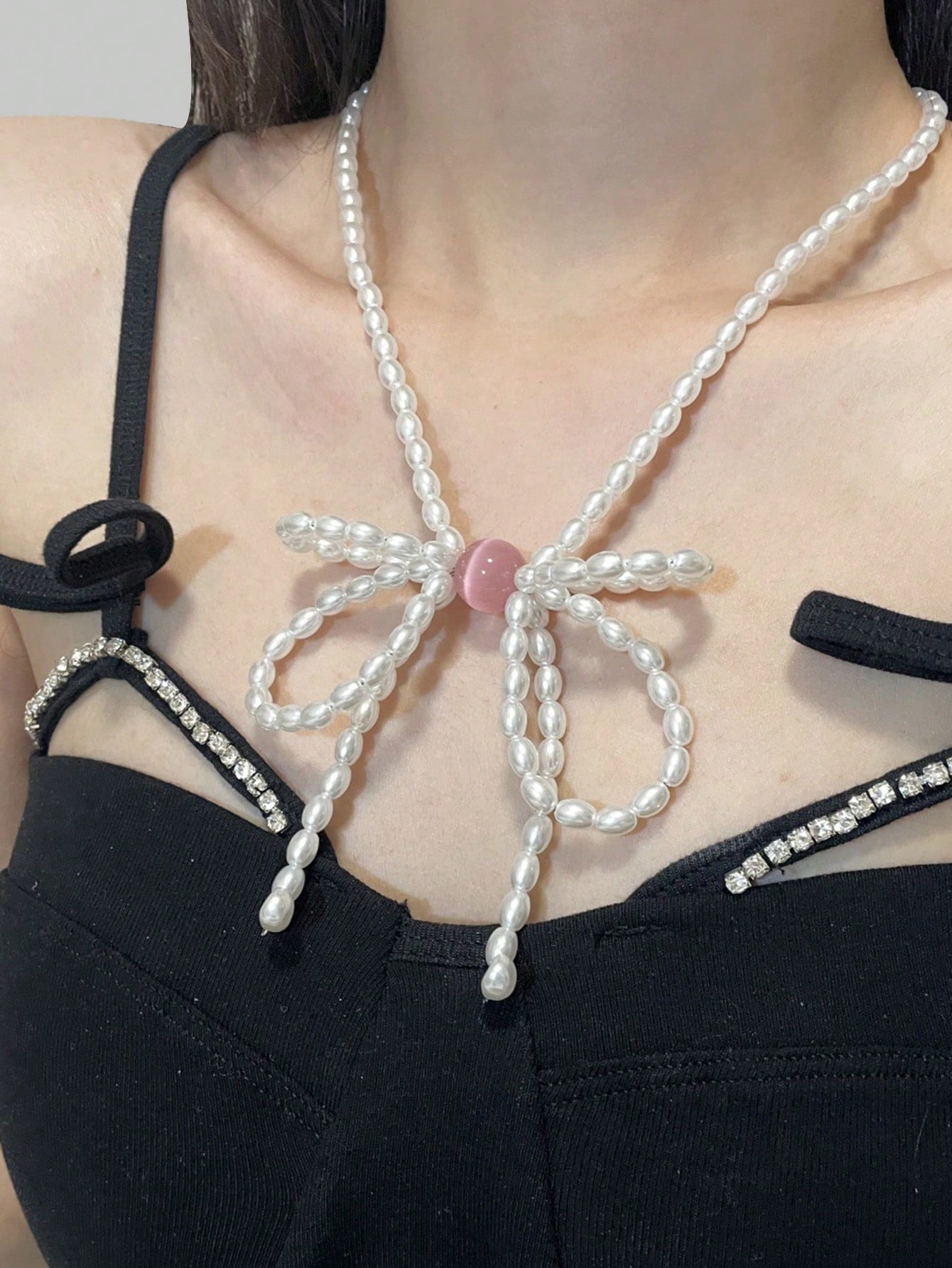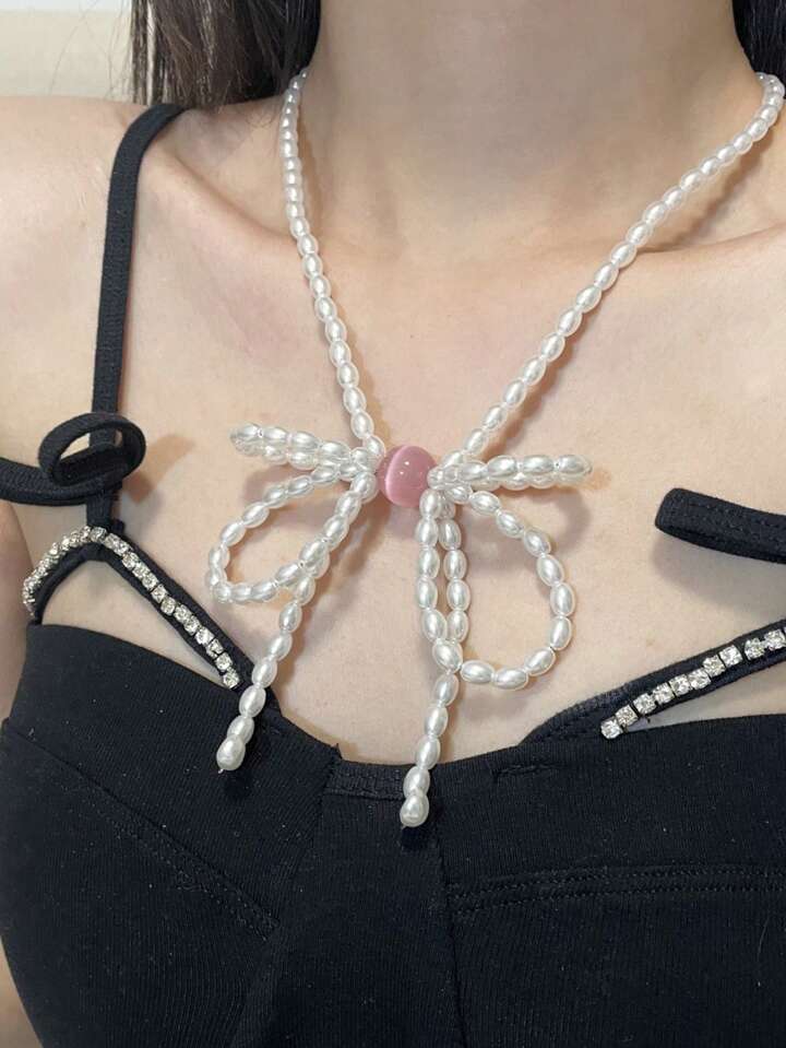 Fairycore 1pc Women's Retro Elegant Pearl Butterfly Beaded Necklace
