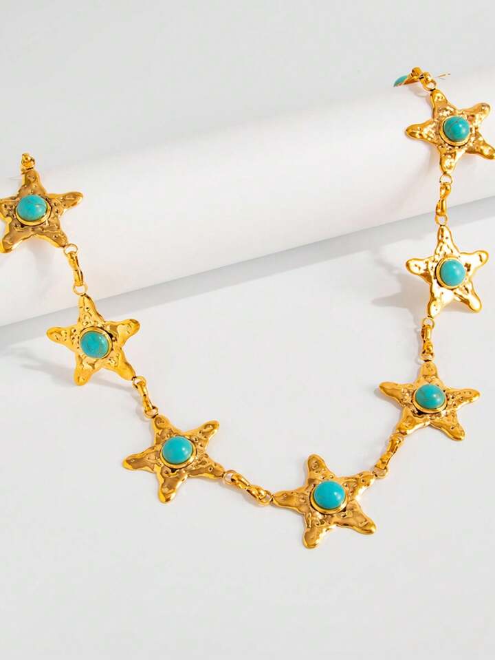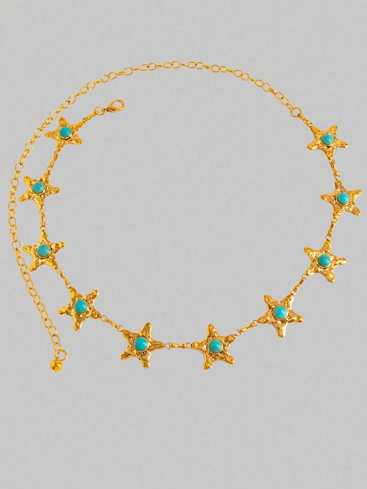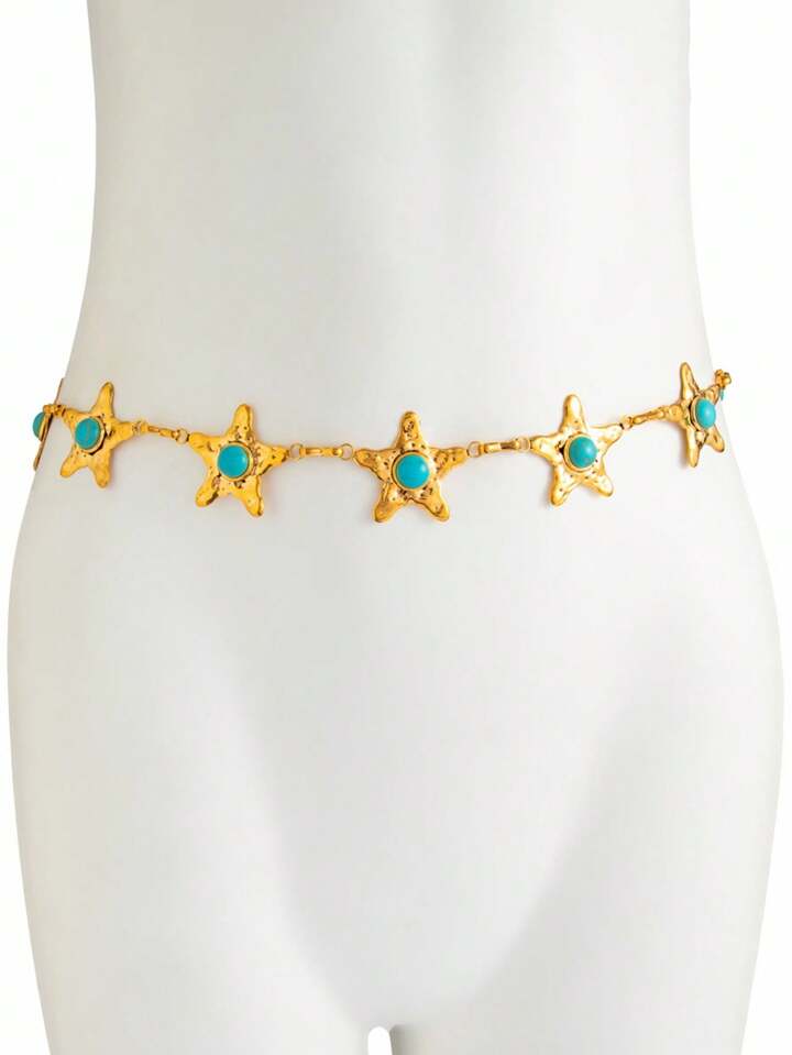 Fairycore 1pc Women's Sexy Metallic Starfish & Turquoise Waist Chain