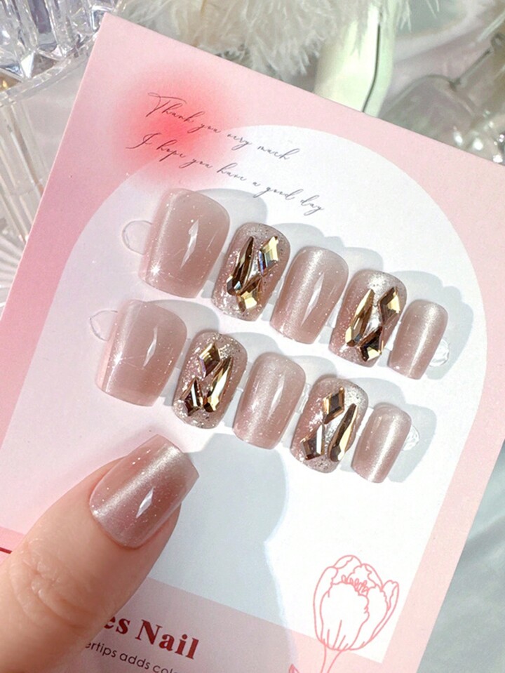 Fairycore 24pcs Detachable Full Cover Cat Eye UV Gel Nail Polish Glitter Set