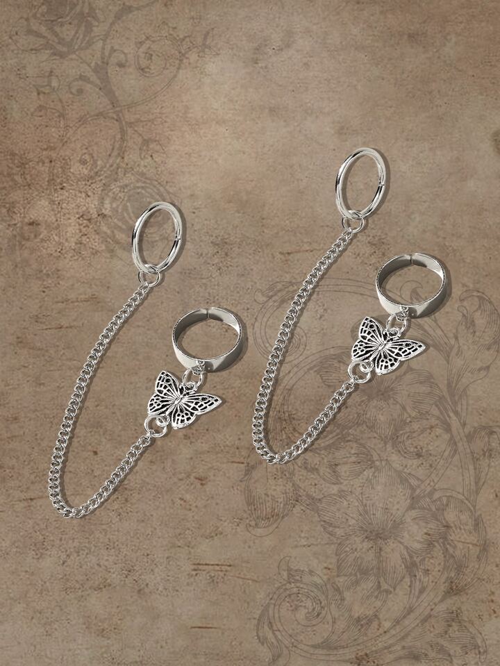 Fairycore 2pcs Butterfly Decor Mittens Ring