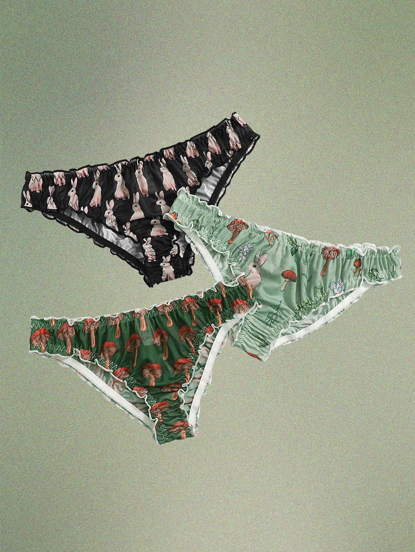 Fairycore 3pack Mushroom & Rabbit Graphic Lettuce Trim Panty Set