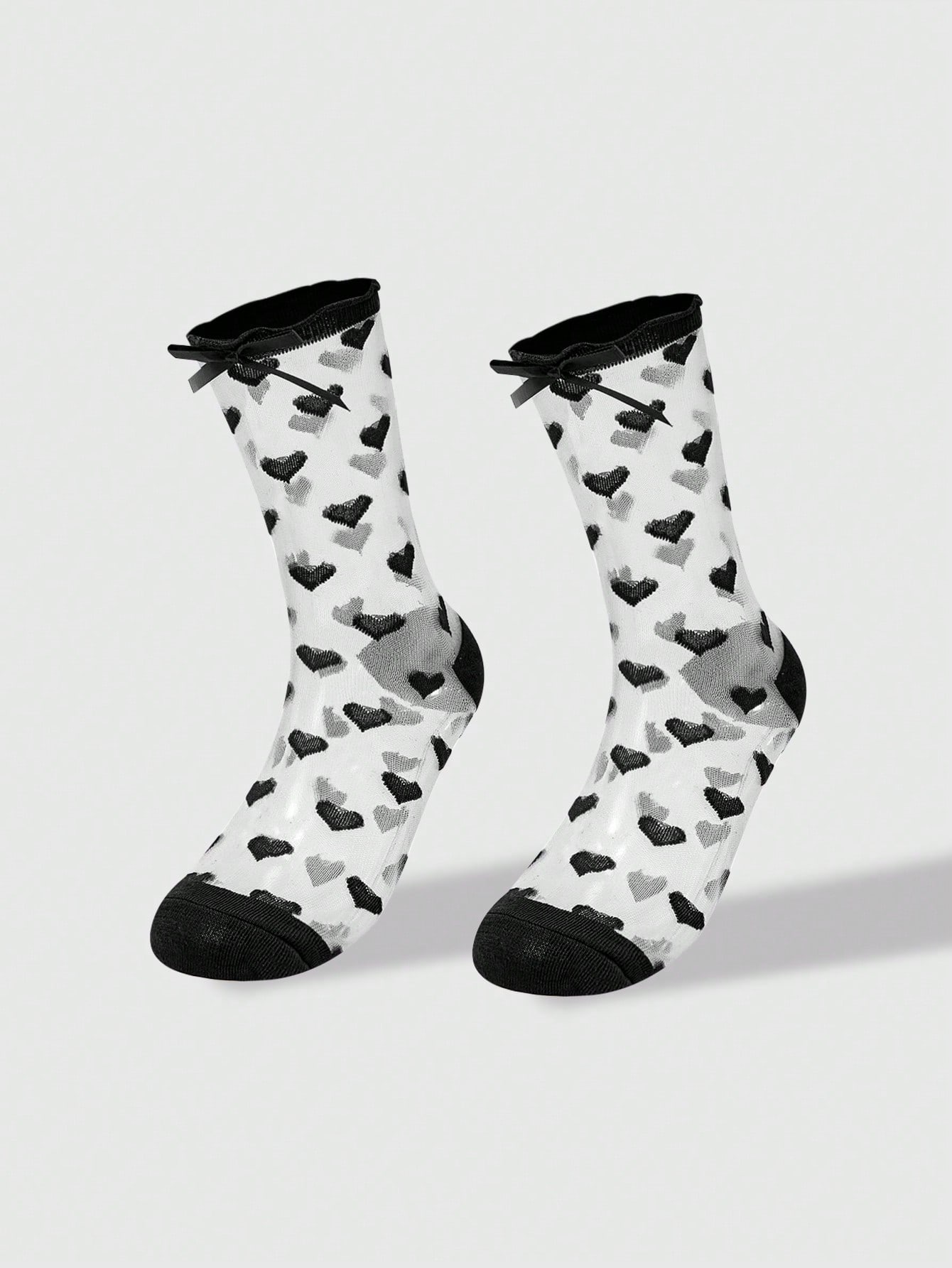 Fairycore 4 Pairs Women's Bowknot & Lace Detail Ice Silk Mid-Calf Socks, All Season