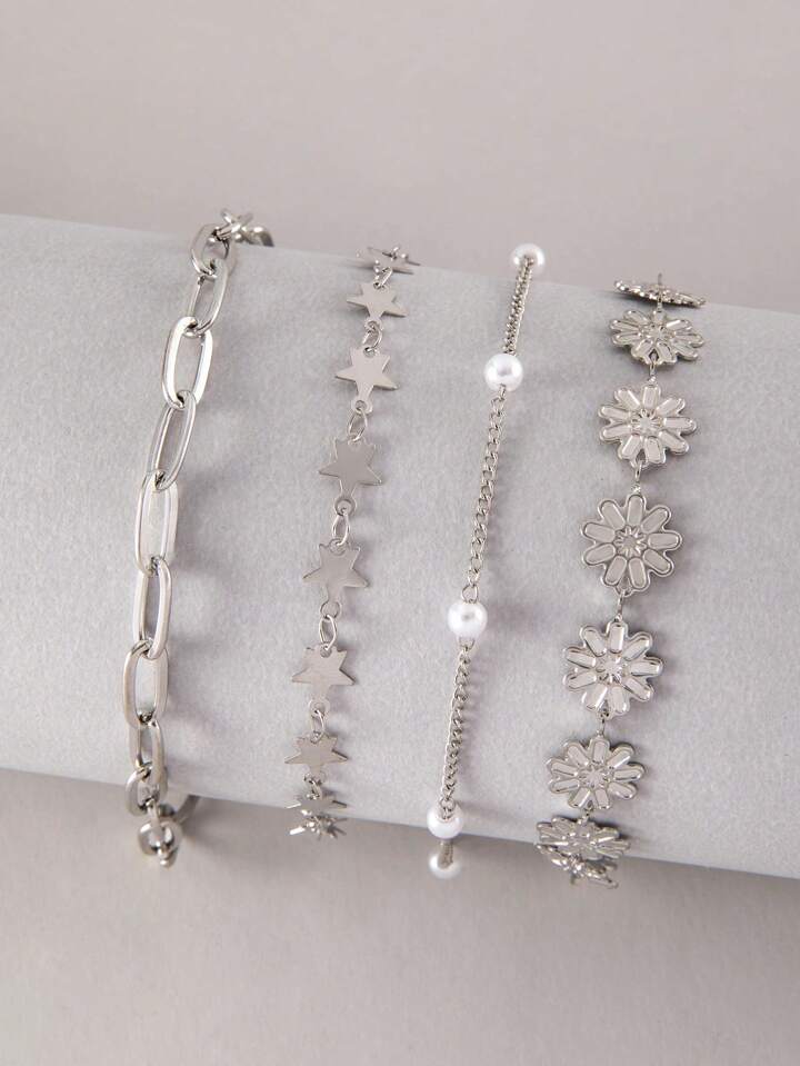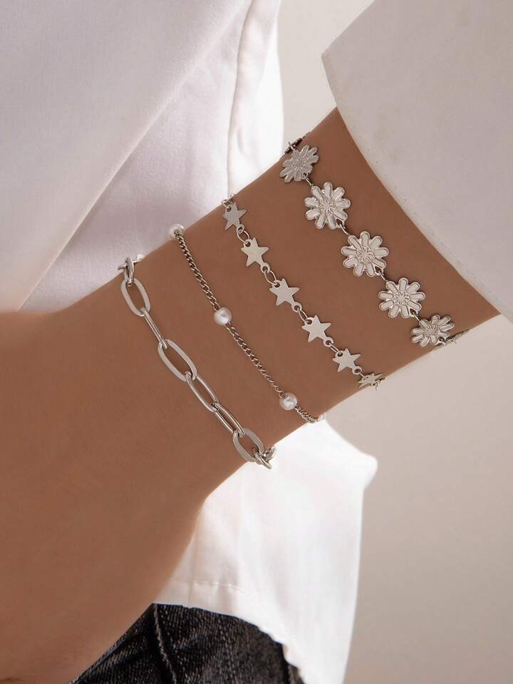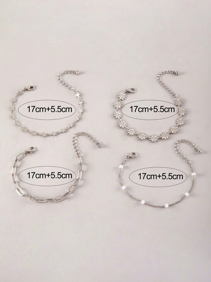 Fairycore 4pcs Fashion Zinc Alloy Flower & Star Decor Bracelet For Women For Daily Decoration