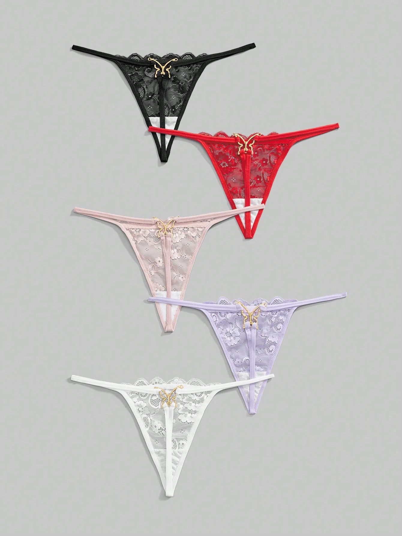 Fairycore 5pcs/Set Sexy Butterfly Metal Decor Lace Thong Panties