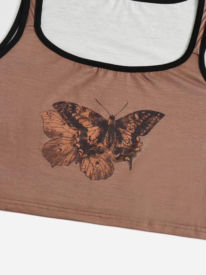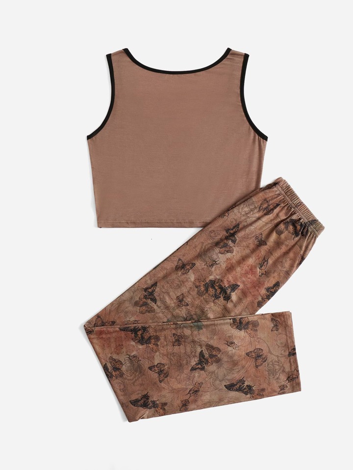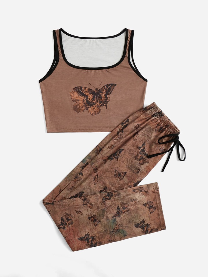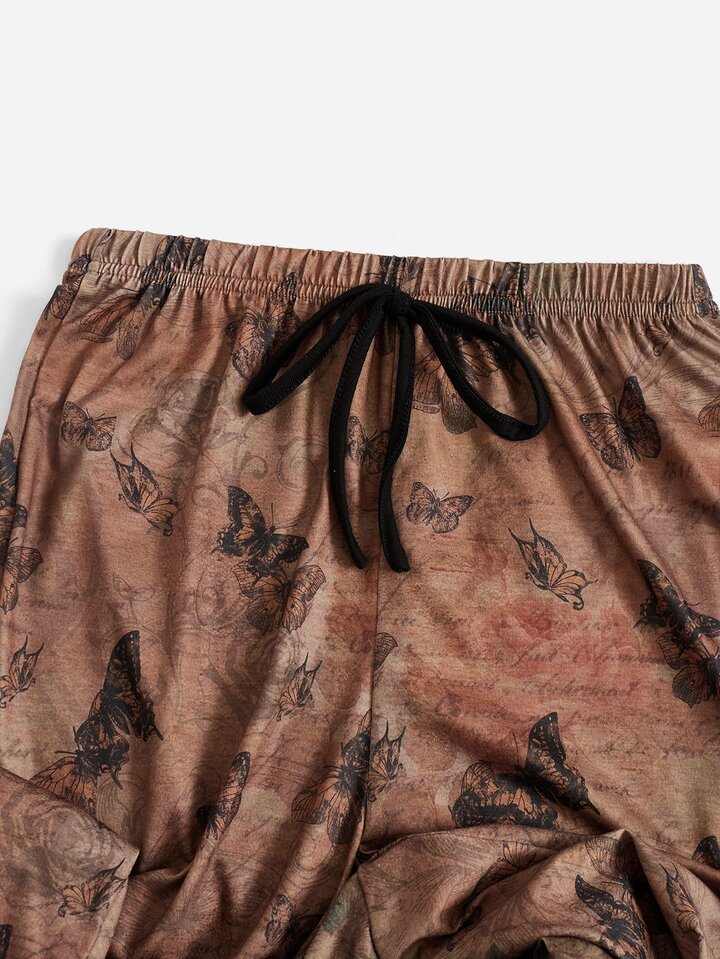 Fairycore Butterfly Graphic Ringer Pajama Set