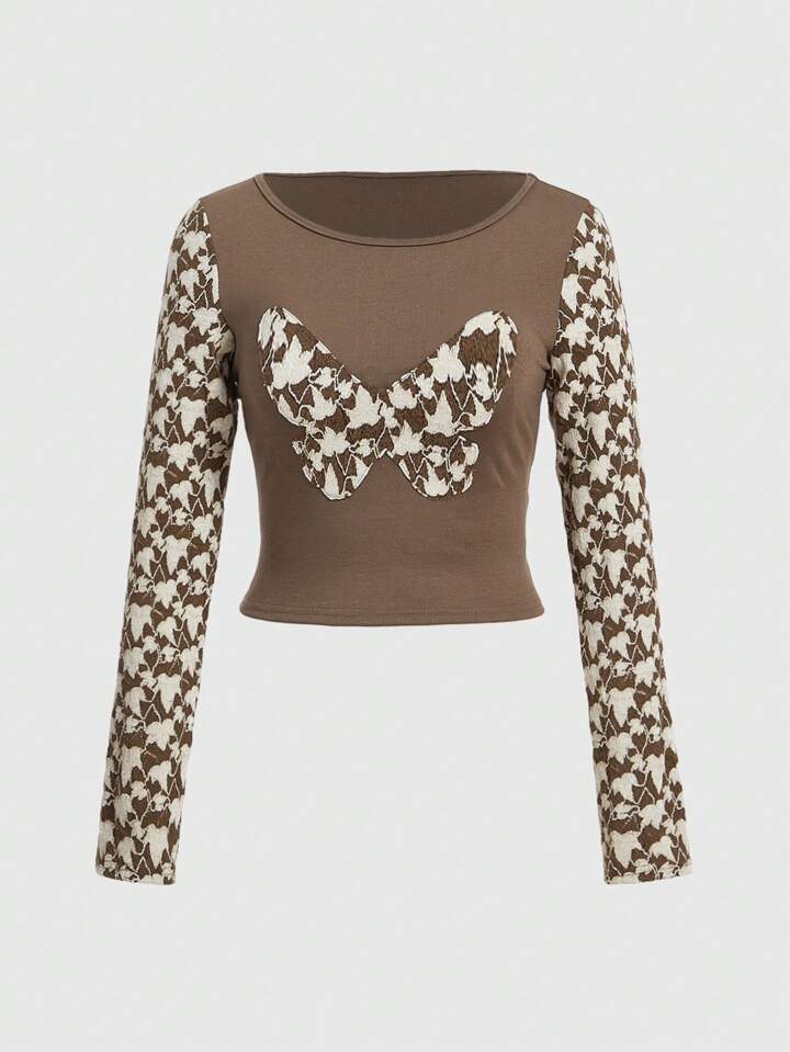Fairycore Butterfly Pattern Long Sleeve Top