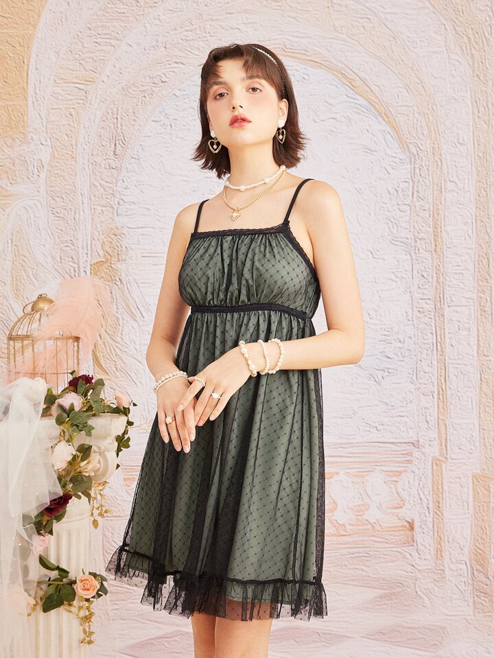 Fairycore Contrast Lace Ruched Bust Cami Dress