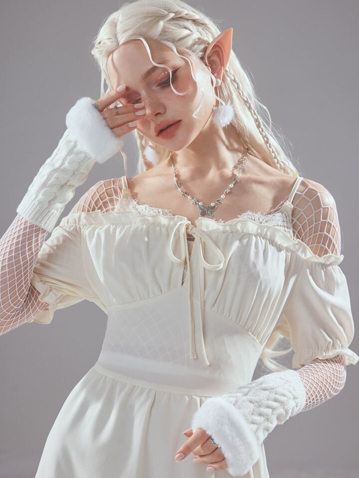 Fairycore Contrast Mesh Cold Shoulder Tie Front Dress