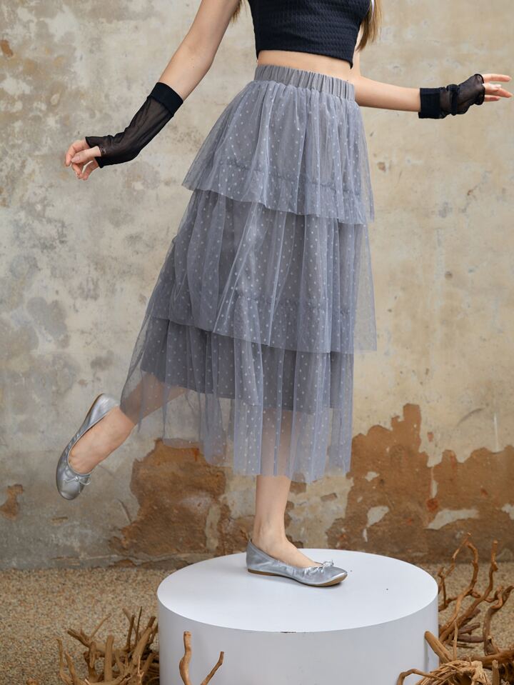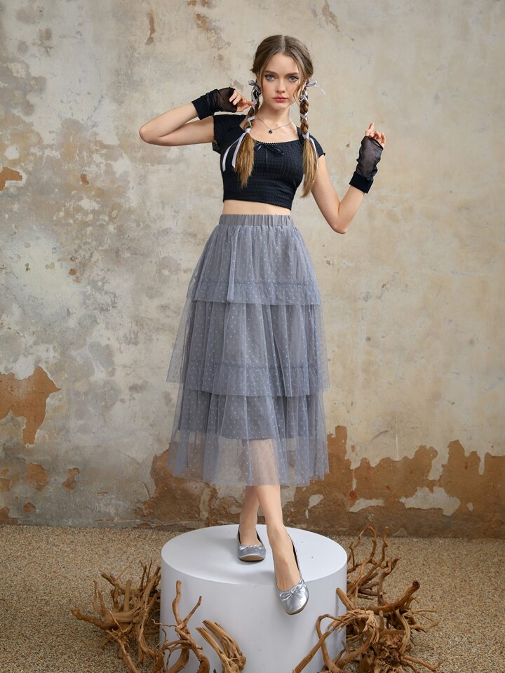 Fairycore Dobby Mesh Overlay Layer Hem Skirt